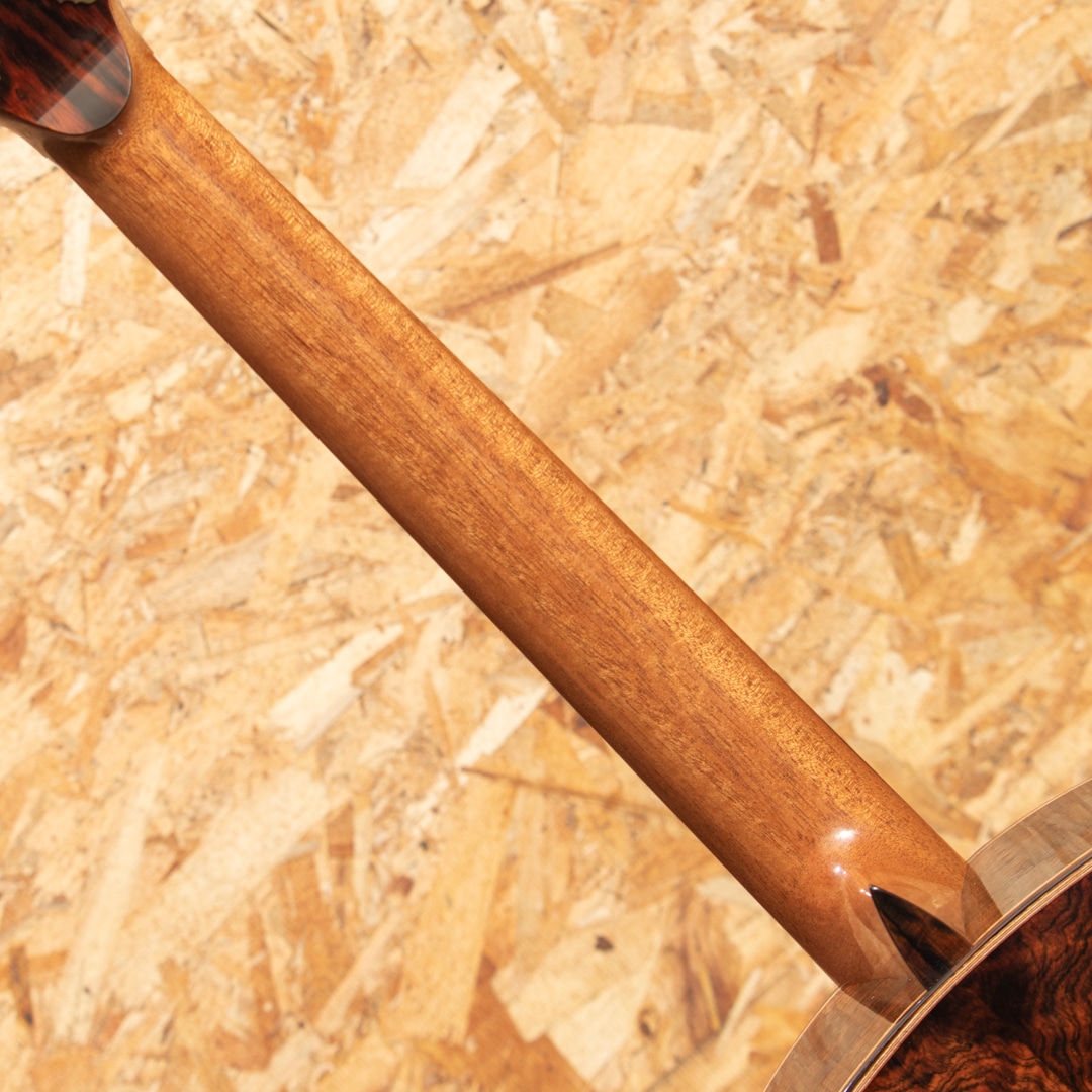 バックにはスプルース単板(内側)とハカランダ単板(外側)を合わせたダブルバックを採用。単板としての機能を持たせながら重量、剛性の調整ができるため個人製作家の間でも人気の仕様です。