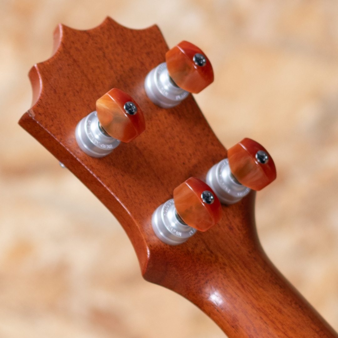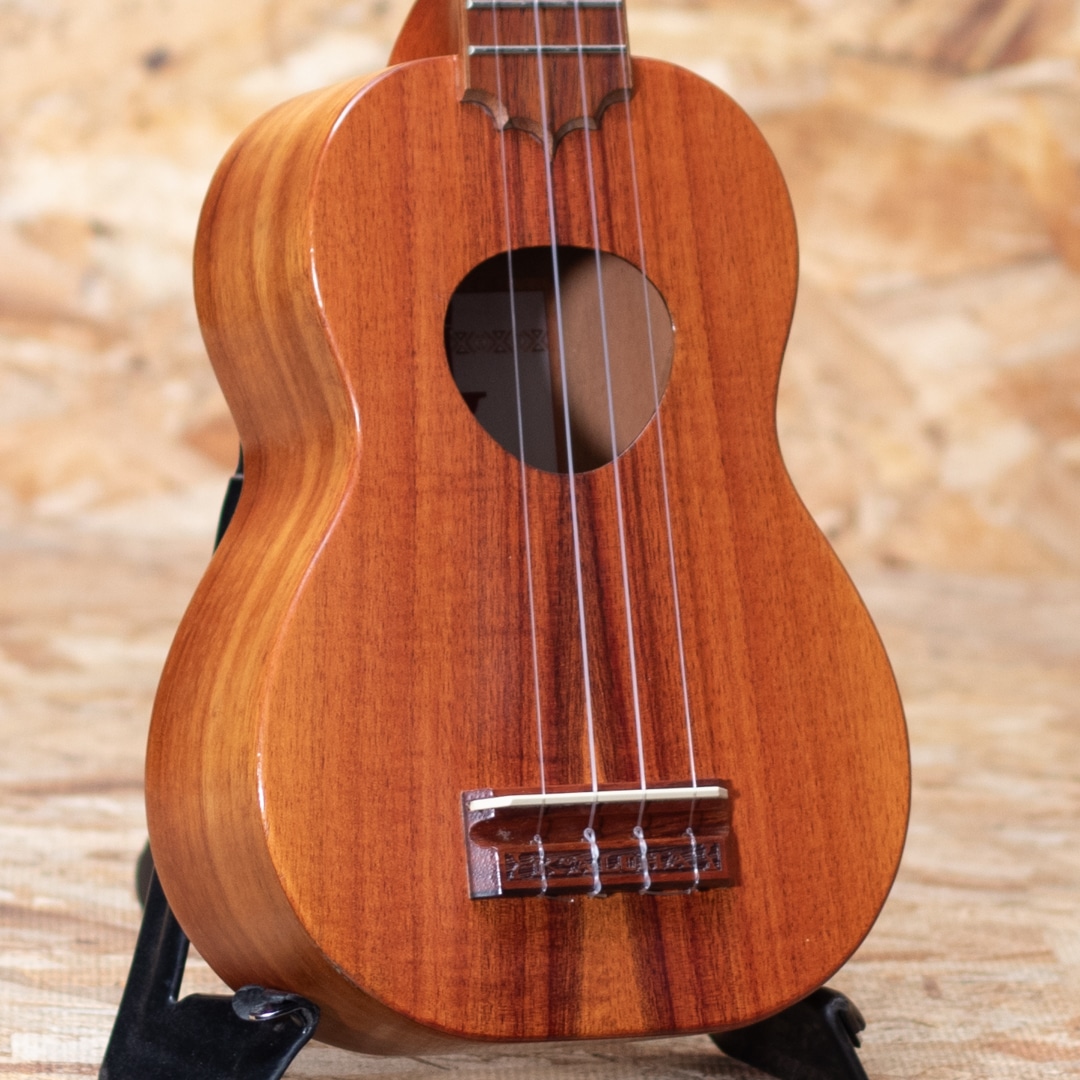 アルヴィン・オカミにより1995年に創設されたコアロハ・ウクレレ。現在は長男で社長のアランと、次男で副社長のポールを中心に少数精鋭の職人で運営されております。今ではハワイを代表するウクレレメーカーの一つとなったコアロハ。三角のサウンドホールやクラウンデザインのヘッド等、モダンなルックスと、明瞭なトーンで響かせる大音量が特徴。本器は最もスタンダードなソプラノモデル2013年製のUSED品。ソプラノサイズながらしっかりとした安定の良いサウンドで、ストラミングで気持ちよく鳴らしたいウクレレです。細やかな打痕など薄い使用感は見られますが大きく目立つ傷などは見られずグッドコンディションです。演奏性も良好でペグはフリクションタイプからGotohのUPTペグに交換が行われており、スムーズなチューニングが可能です。大人気のハワイメイドウクレレ。ハードケースが付属します。