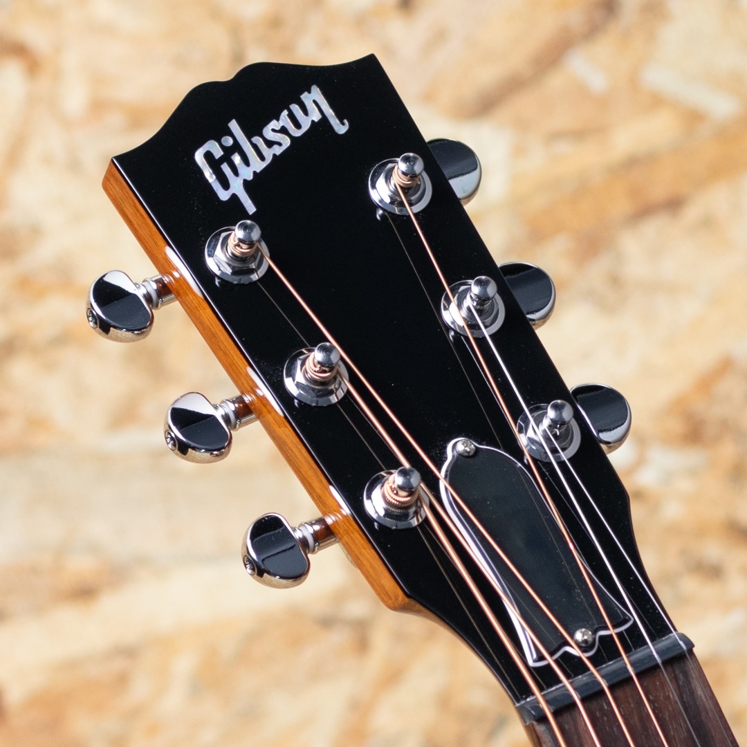 1932年に発表された歴史的銘器"L-00"の新基準のスタンダードモデル"L-00 Standard"。本器はヘリテージチェリーサンバーストフィニッシュにホワイトカラーのピックガードを採用した弊社オーダーモデルの1本。淡いボディの色味と白のピックガードがマッチした少し可愛らしさもある良いルックスに仕上がっています。シトカスプルーストップ、マホガニーサイド&バック、マホガニーネック、ローズウッド指板&レクタングルブリッジ、グローバーペグ(スモールノブ)、パールヘッドロゴ、スキャロップドXブレイシング、L.R.Baggs社製 Element VTCピックアップ標準装備。15インチ弱のコンパクトな薄胴ギターですが、フルボディのJ-45に迫るボリュームも合わせ持っています。指板サイドにはスムーズな運指をフォローする丸みを帯びた処理が施されています。搭載のPUは1ボリューム1トーン仕様のシンプルな操作でより幅広いユーザに向けて、より幅広いサウンドメイクが可能となります。歯切れ感の強い音で、気っ風がよく、サイズ感以上のボリュームを体感できます。ギブソンの味ともいえるサステイン短めのクリアなトーンが持ち味です。カントリーブルースやラグタイムなどの奏法や、ストロークとアルペジオを交えた弾き語りにも最適です。ステージなどでも映える、ルックス抜群のオーダー品です。