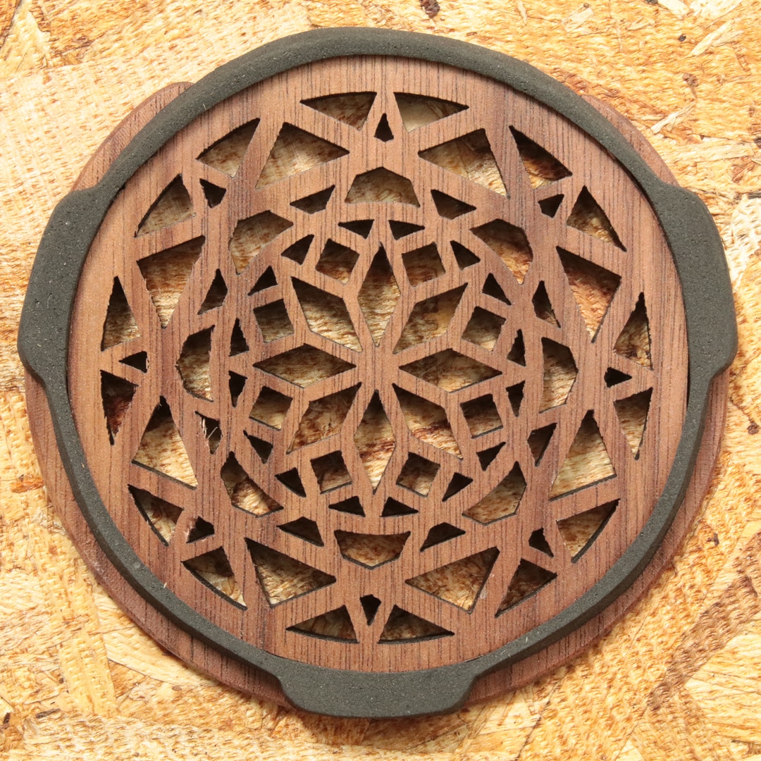 印象的なデザインが魅力のオシャレな木製サウンドホールカバー。自然な響きを残したまま、適確にフィードバックを抑制します。Made in U.S.A.