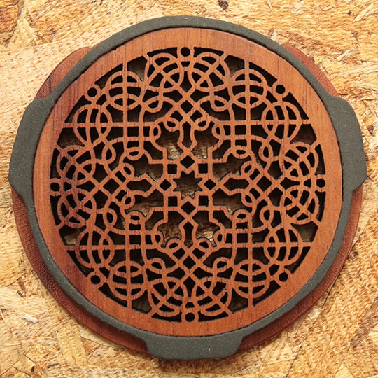 印象的なデザインが魅力のオシャレな木製サウンドホールカバー。自然な響きを残したまま、適確にフィードバックを抑制します。Made in U.S.A.
