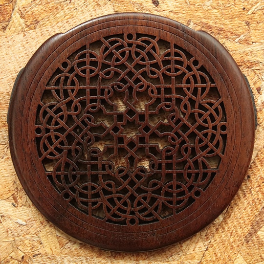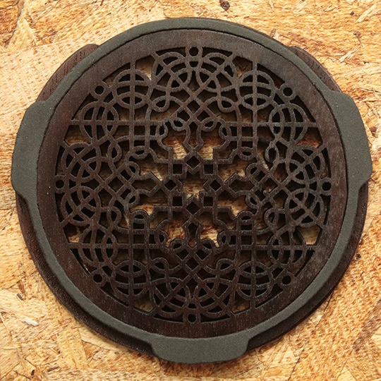 印象的なデザインが魅力のオシャレな木製サウンドホールカバー。自然な響きを残したまま、適確にフィードバックを抑制します。Made in U.S.A.