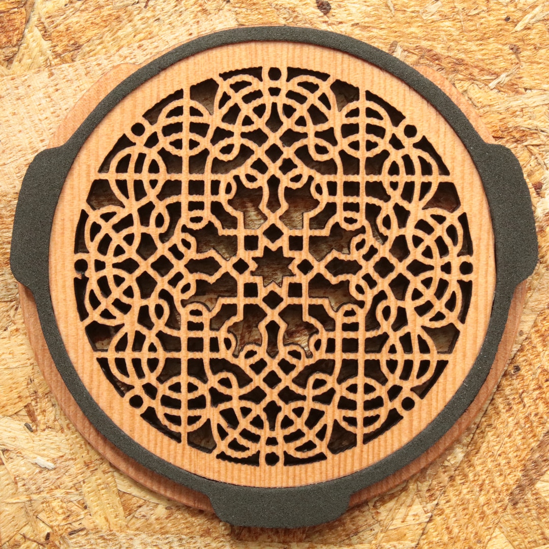 印象的なデザインが魅力のオシャレな木製サウンドホールカバー。自然な響きを残したまま、適確にフィードバックを抑制します。Made in U.S.A.
