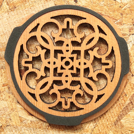 アメリカ・フロリダにて製作されているフィードバック抑制用のサウンドホールカバー。15種類のデザインと7種類のウッドマテリアルの組み合わせが存在し、それらの全ては精密なレーザー加工にて製作されております。アート性が高いのも特徴で、ギターの装飾の一部としてアクセントにもなるため、フィードバックの問題を抱えていない場合でもオシャレなアートカバーとしてお使い頂けます。完全密閉ではない構造のため、一般的なゴム製のサウンドホールカバーに比べ、大事なギター本来のサウンドを損なうことなく、自然な響きを残したままフィードバックを抑えることができます。そのデザイン性、品質の高さから海外アーティストを中心とする多数のアーティストがLUTE HOLEを愛用しています。 ≪Acoustic INNの "LUTE HOLE" 全在庫はコチラ≫ 【取り付け可能なサウンドホールのおよそのサイズ】 ・サウンドホールサイズの直径が約99mm~約102mm。 ※リュートホール自体に僅かな個体差があるため、フィット感にも多少の差がございます。 【取り付け不可能なタイプ】 ・サウンドホール周りにピックアップのコントロール部などがある場合。 ・指板がサウンドホール上にせり出している場合。 ・形状が特殊なサウンドホールの場合。 ▼LUTE HOLEの使用例、カスタマイズ例、使用アーティスト etc.▼ ≪Lutehole Products Instagram≫ ◇サイズ、個体差など、不安な点がございましたらお電話、メールにてお気軽にお問合せください。◇ <<お問い合わせ>> 三木楽器アコースティックイン アコースティックギター・ウクレレ専門店 MIKI GAKKI Acoustic INN OSAKA TEL: 06-6211-2230 〒542-0086 大阪市中央区西心斎橋2-10-2 Crice Nikko 西心斎橋2F 通常火曜定休 お問い合わせメールはこちら