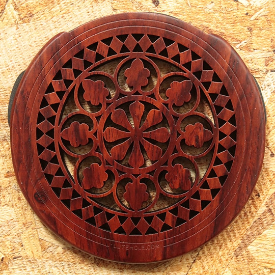 印象的なデザインが魅力のオシャレな木製サウンドホールカバー。自然な響きを残したまま、適確にフィードバックを抑制します。Made in U.S.A.