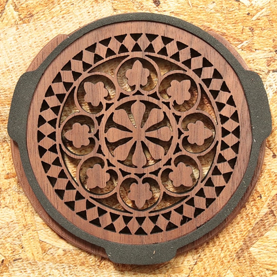印象的なデザインが魅力のオシャレな木製サウンドホールカバー。自然な響きを残したまま、適確にフィードバックを抑制します。Made in U.S.A.