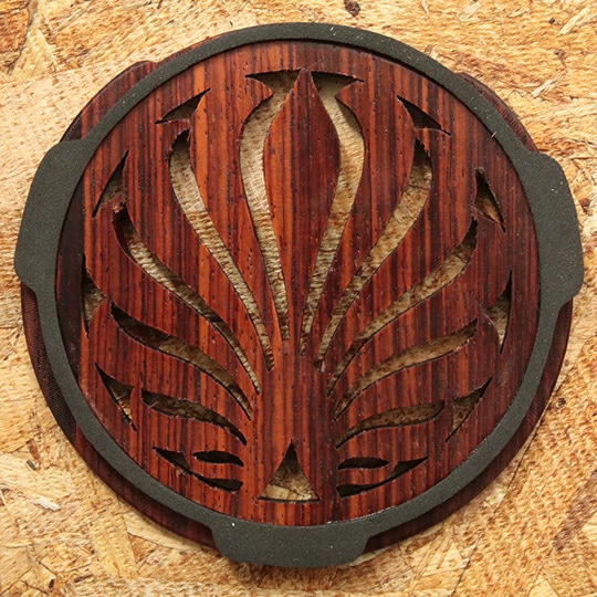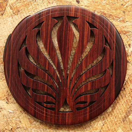 印象的なデザインが魅力のオシャレな木製サウンドホールカバー。自然な響きを残したまま、適確にフィードバックを抑制します。Made in U.S.A.