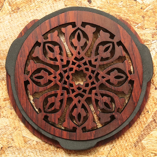 印象的なデザインが魅力のオシャレな木製サウンドホールカバー。自然な響きを残したまま、適確にフィードバックを抑制します。Made in U.S.A.
