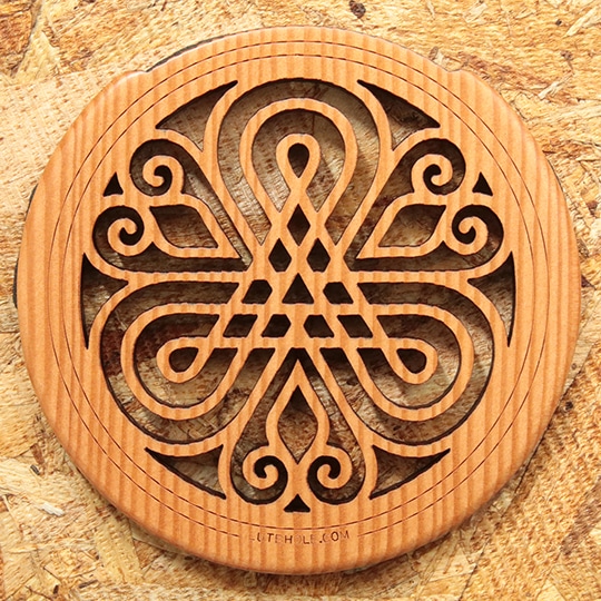 印象的なデザインが魅力のオシャレな木製サウンドホールカバー。自然な響きを残したまま、適確にフィードバックを抑制します。Made in U.S.A.