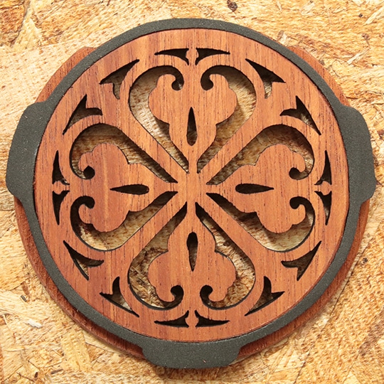 印象的なデザインが魅力のオシャレな木製サウンドホールカバー。自然な響きを残したまま、適確にフィードバックを抑制します。Made in U.S.A.