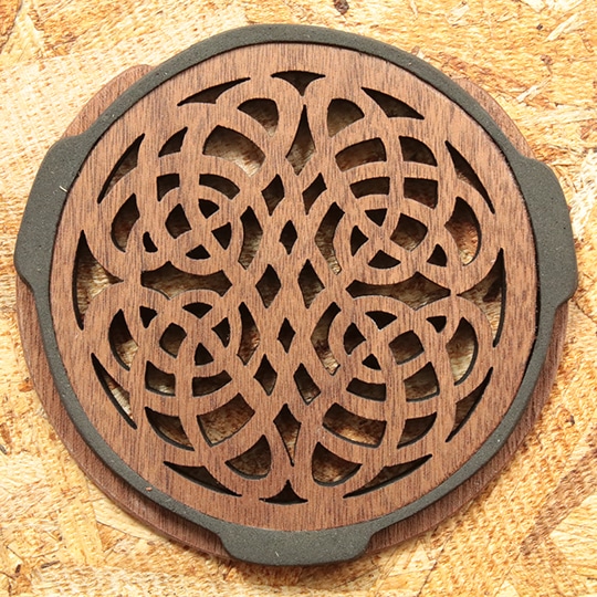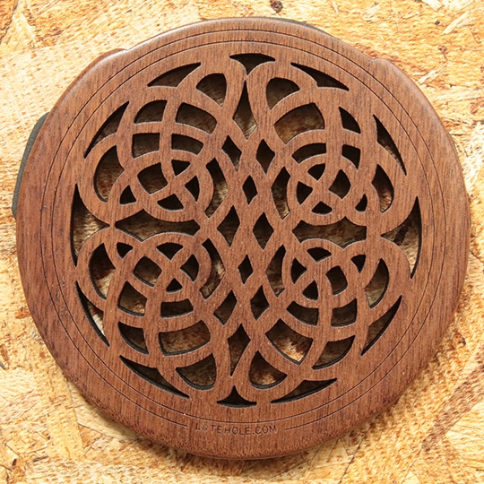 印象的なデザインが魅力のオシャレな木製サウンドホールカバー。自然な響きを残したまま、適確にフィードバックを抑制します。Made in U.S.A.