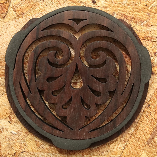 印象的なデザインが魅力のオシャレな木製サウンドホールカバー。自然な響きを残したまま、適確にフィードバックを抑制します。Made in U.S.A.