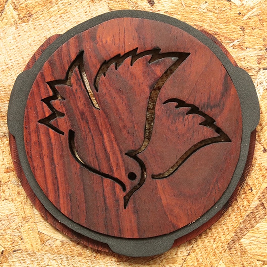 印象的なデザインが魅力のオシャレな木製サウンドホールカバー。自然な響きを残したまま、適確にフィードバックを抑制します。Made in U.S.A.