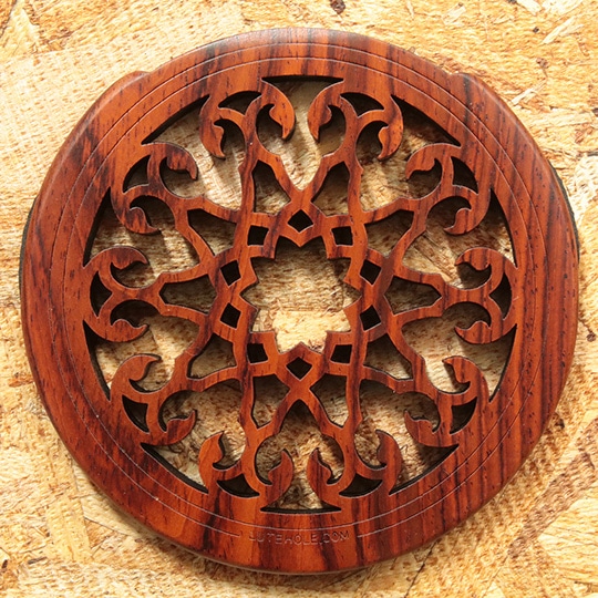 印象的なデザインが魅力のオシャレな木製サウンドホールカバー。自然な響きを残したまま、適確にフィードバックを抑制します。Made in U.S.A.