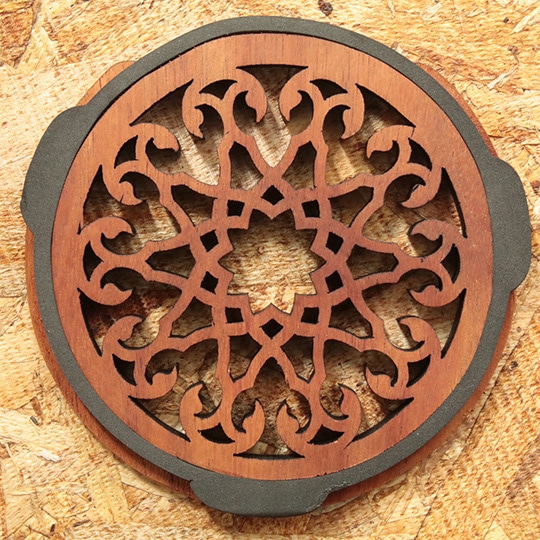 印象的なデザインが魅力のオシャレな木製サウンドホールカバー。自然な響きを残したまま、適確にフィードバックを抑制します。Made in U.S.A.