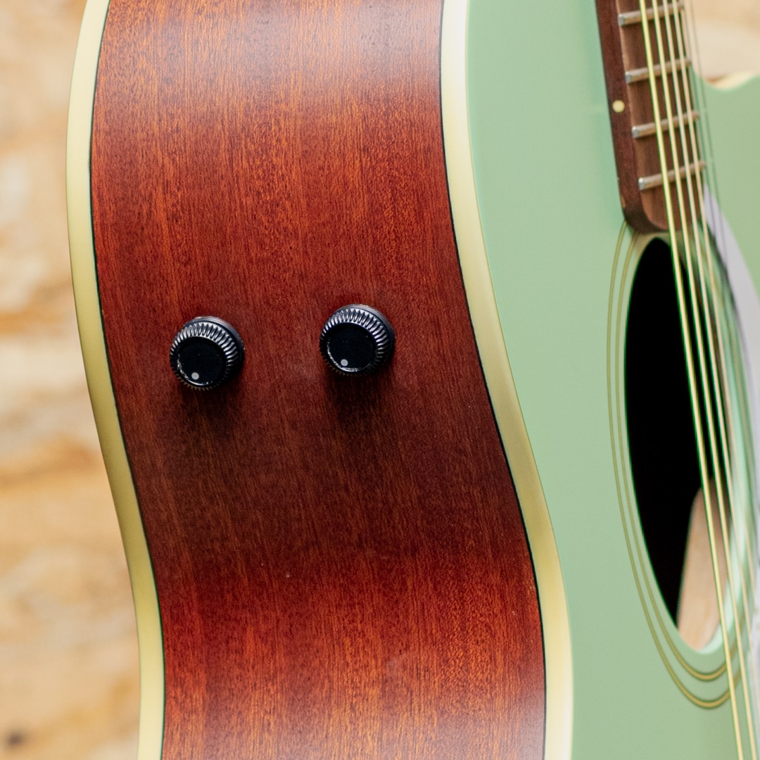 プレイヤーの音楽的ビジョンや表現方法を広げてくれるユニークなギターです。特別にデザインされたミドルサイズのNewporterボディ・シェイプは、クリアでパワフルなバランスの取れたサウンドを実現し、あらゆるシンガーをパーフェクトにバックアップします。スプルーストップ、サペリサイド&バック仕様。さらにデザインにマッチしたペイントの6インライン・ヘッドストックや、クリーム・バインディングが雰囲気にアクセントを加えています。細部に至るまで妥協なくユニークな雰囲気を持つNewporter Playerは、他のギターと一線を画するエキサイティングなギターです。スリムテーパー加工を施し握りやすくなっているネック、フェンダーの象徴である6連ヘッドなどどれをみても斬新でクールなルックスを持っています。大手ピックアップメーカーFISHMAN社製ピックアップシステムを搭載。ラウドでバンドサウンドの中でも埋もれない明瞭なサウンドです。ステージ映えもする一本。見た目もこだわりたい方にもおすすめです。