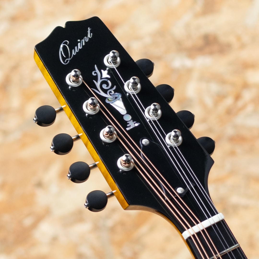 いくつかのメーカーで楽器製作を学び、その後North Field Mandolin立ち上げから製作に関わった後に独立する中国のMaster Luthier Qin Ji Duoが製作するQuint Mandolin。こちらはQT-A5 YN。オーダーカラーの上品で美しいイエローナチュラルカラーです。削りだしイタリアンスプルーストップ、削りだしフィギャードスイスメイプルバック、スイスメイプルネック、プレミアムエボニーRadius指板、ミディアムサイズのフレット、後藤ペグ、べっ甲柄バインディング、べっ甲柄ガード。Fタイプ同様の15FジョイントのStyle-Aでハイポジションまで操作性も良好です。Radius指板にミディアムフレット、指板エンドは短めで20fからスクープ加工が施されており抜群の操作性を誇ります。またトップのアーチの美しさや仕上がりの良さなど随所に高い工作制度とセンスの良さを感じます。鳴りを最大限に高め、よりウッディーな響きを引き出す極薄フレンチポリッシュフィニッシュで艶のある美しいプレーン弦の響きとウッディーで太く抜けるワウンド弦の力強さを引き出しています。このクオリティーをもちながらこの価格は他では見られません。フラマン初心者の方からハードユーザーまでジャンルを問わず使えるオールラウンダーなフラマンをお探しの方におすすめです。ファイバーケース付属