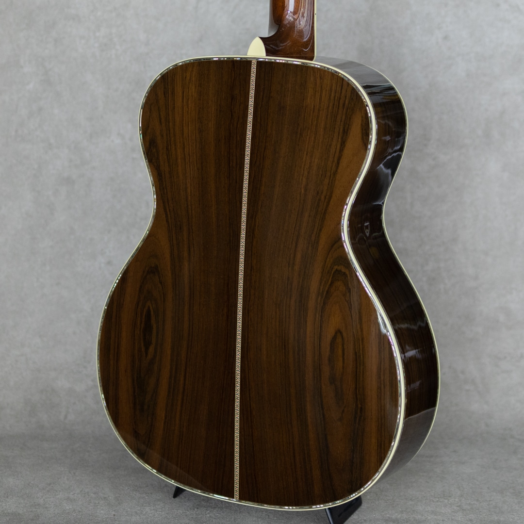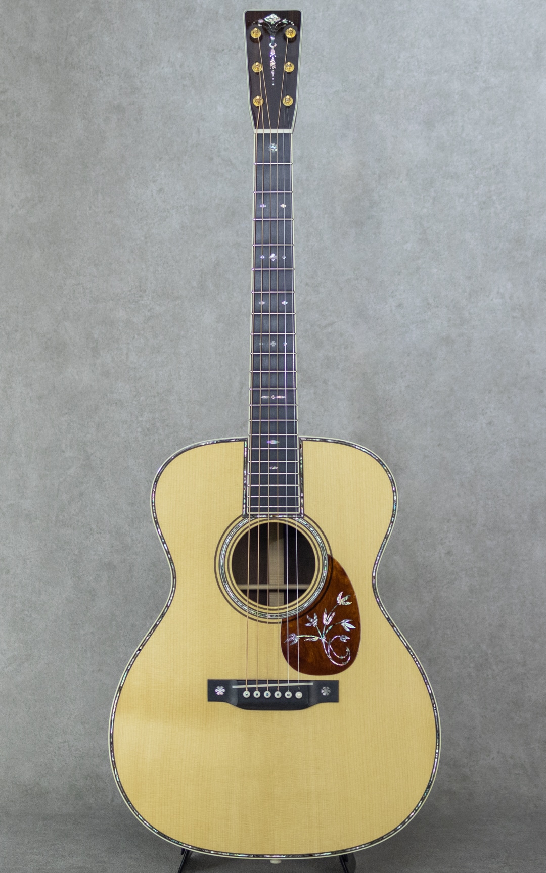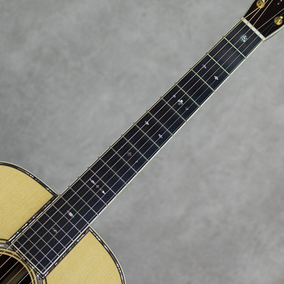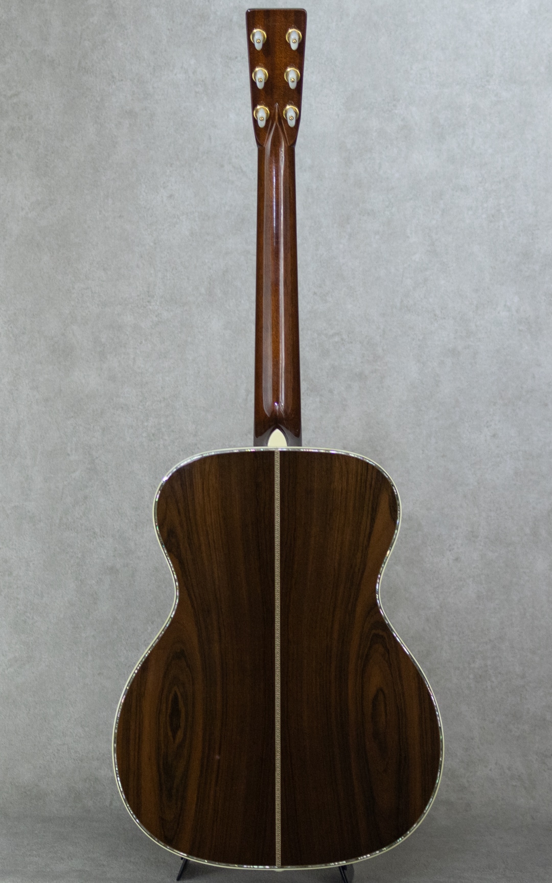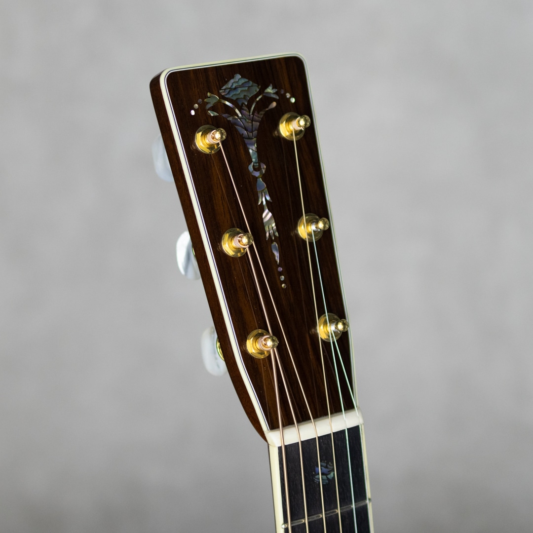 Martin社の戦前期 D-45、OM-45DeLuxeと言えばヴィンテージギターの中でも別次元のレア度を誇るファン崇高のアイテム。ラグジュアリーなディティールとサウンドの表裏文句の付け所のない名器として特別な扱いをされるモデルです。中でもOM-45 DeLuxeは1930年にのみ14本の生産と極めて少なくとりわけレアなモデルです。もちろん価格も桁違いですが、保有できることがステータスであり、それは製造を行ったMartin社も例外ではありませんでした。当時Martin社がアメリカの某オークションで1930年製のオリジナルOM-45 DeLuxeを落札。過去自らが生み出した名器を高額で同社が手に入れたというニュースはギターマニアの間でも大きなニュースとなりました。後に実機を計測、研究し2014年に本器の製作を着手。そして世に11本のみと言う少数で製造されたのが、本器”OM-45 De Luxe Authentic 1930”です。経年面の再現ではVTSを採用することにより、マーティン社が再現しうるもっともラグジュアリーなAuthenticモデルとして生産されました。過去のAuthenticシリーズの中でも類を見ない最高の仕上がりである事は言うまでもなく、当時11本のギターは世界のトップディーラーに即座に完売。運よく手にされた方はもちろん世界に11人しかいませんでした。もはやこれ以上のスペック説明は下記ディティール表記、写真で理解頂けるかと存じます。今回入荷の幻のオーセンティックモデルは、コンディションは文句なし。表層的な磨き線程度のニアミントコンディション。ネックのコンディションも素晴らしく演奏性はみじんも損なわれておらずサウンドの素晴らしさは言うまでもありません。D-50やD-100等の美しい装飾が施された高額モデルはありましたが、ヴィンテージレプリカモデルとしては本モデルが最高のモデルです。これを逃せば次はいつ見られるか見当もつかない極希少、至高のコレクターズピースです。詳細はお問い合わせ下さい。