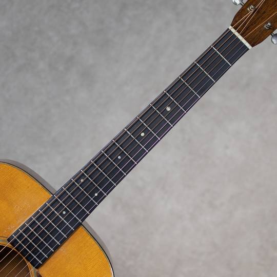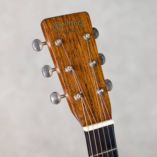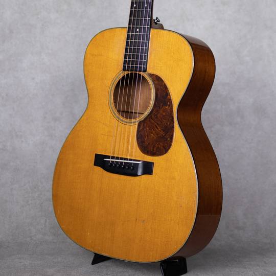 オリジナルスキャロップ期の貴重な”OOO-18"。人気の高いゴールデンエラの1937年製Vintage品。アディロンダックスプルーストップ、マホガニーサイド&バック、マホガニーネック、エボニー指板、エボニーブリッジ、ロングサドル、オリジナルグローバーペグ、オリジナルべっ甲柄セルロイドピックガード、スチールTバーロッド、スキャロップドXブレイシング。過去に修理がされており、トップブレイシングの一部を交換、またボディバインディングがべっ甲柄セルロイドバインディングに巻き直し、ボディサイドのジャック穴の埋め、ネック・サイド&バックの塗装吹き直し、などがされています。いずれも丁寧な作業がされており、肝心のサウンドもしっかりと30sのサウンドを響かせてくれています。柔らかく奥深い響きながら、分離の良いプリウォーサウンド。指で弾いても十二分な反応をしてくれます。ネック周りも良好で弾きやすいアクションを保っています。ますます流通の少ないプリウォーもののマーチン、さらにはかなりの高騰も見られ入手が難しくなっています。良い顔つきのプレイコンディションビンテージ、是非お見逃しなく要チェックください。修理履歴やその他詳細もお気軽にお問い合わせ下さい。