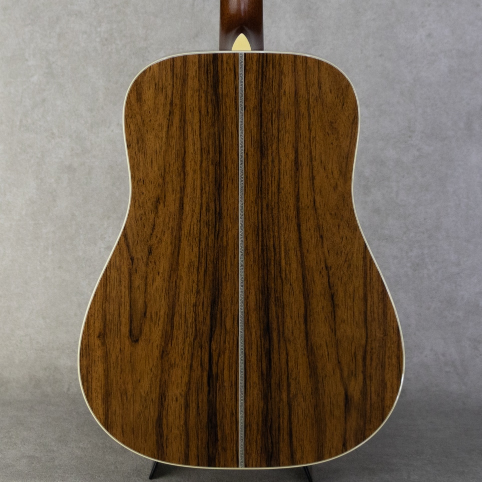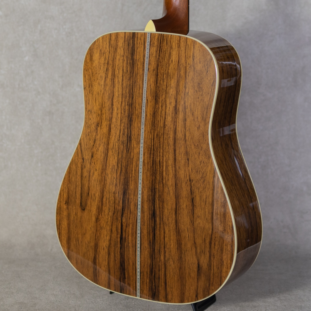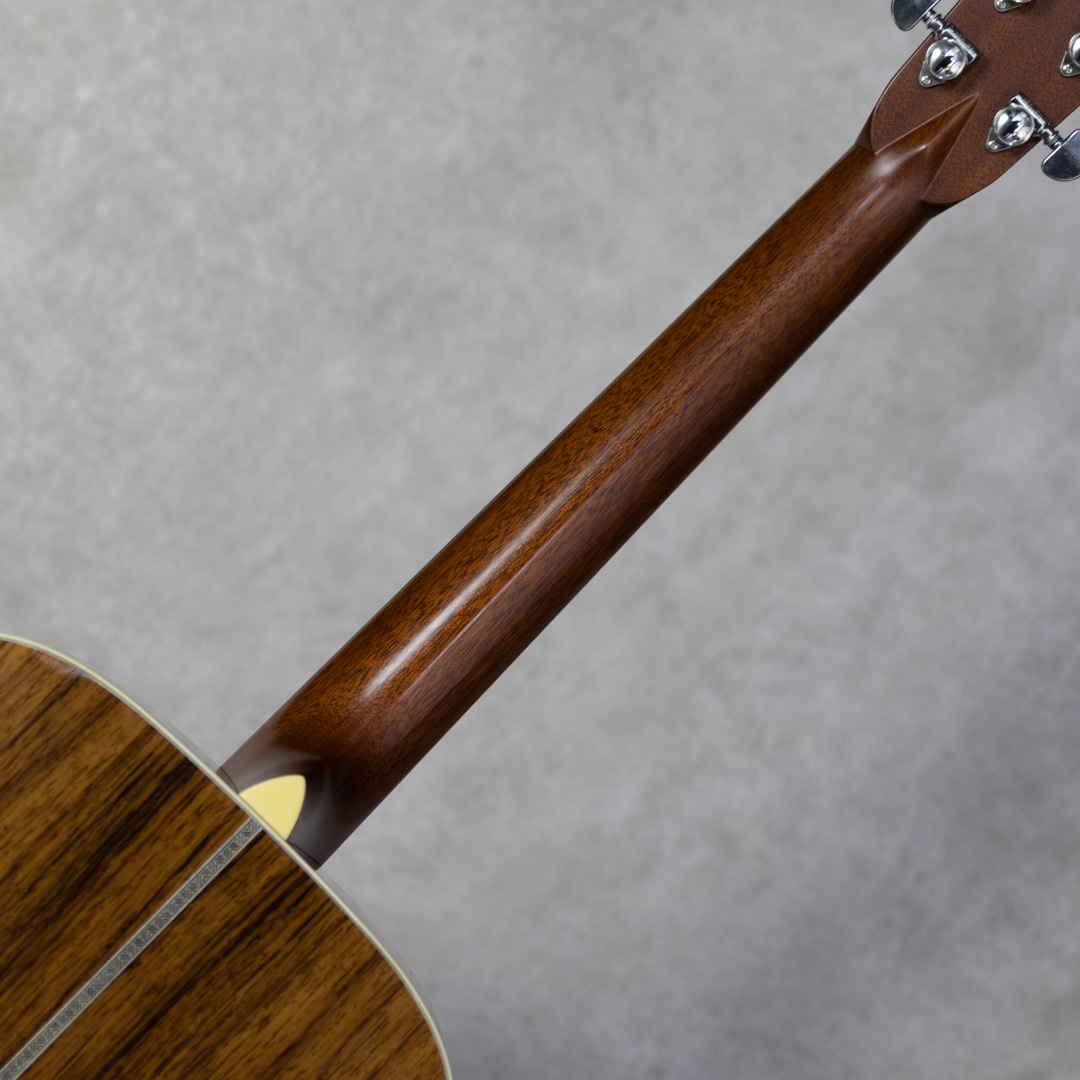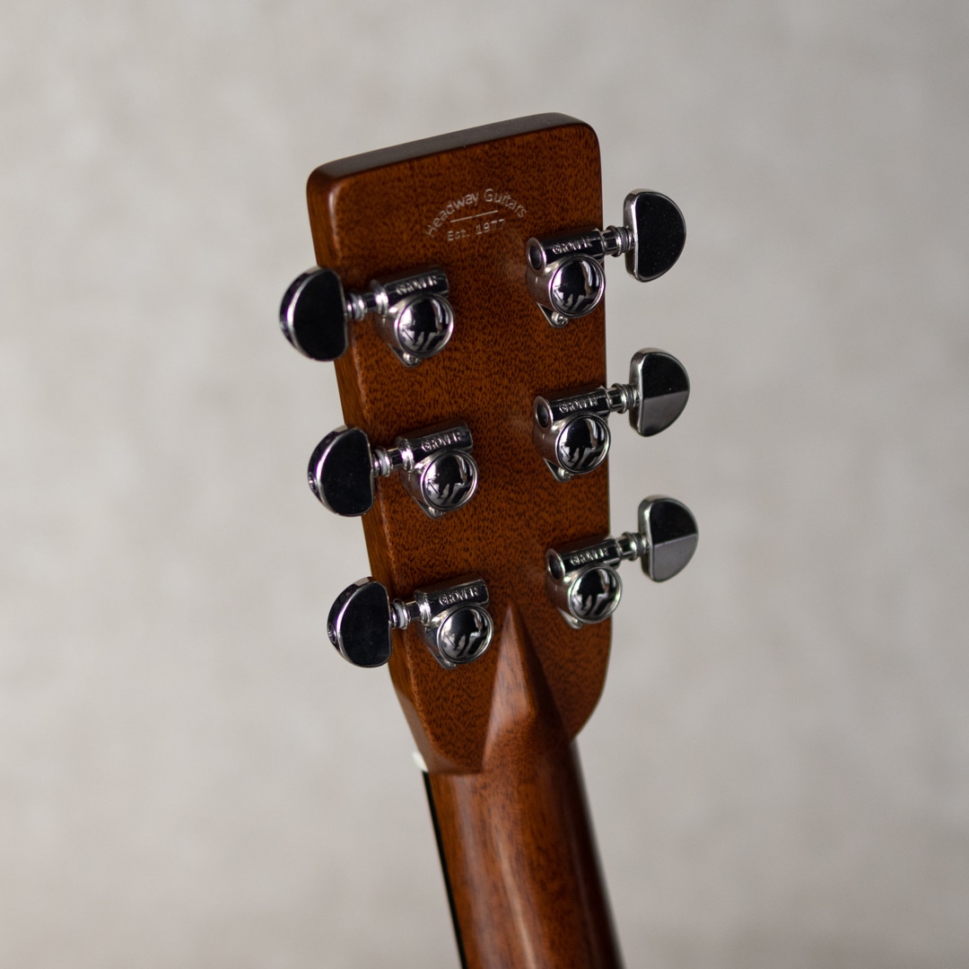 精巧で丈夫な造り、弾き込む程に深化をみせるポテンシャルを秘めた”最高のギター"Headway。本器は名工百瀬恭夫氏製作によるカスタムドレッドノウトモデル"HD-280 G/M Custom"。2019年製USED品。トップに均一な杢目のジャーマンスプルース、サイド&バックには濃淡の美しいマダガスカルローズウッドを使用。ホンジュラスマホガニーネック、エボニー指板&ブリッジ、グローバー102Cペグ、スロッテッドダイアモンドアバロン指板インレイ、塗り込みべっ甲柄セルロイドピックガード、ヘリンボーントリム、アイボロイドバンディング、アジャスタブルネックトラスロッド。トップ構造は百瀬氏オリジナルのリアシフテッド・ノンスキャロップド・Xブレイシングを採用。百瀬氏の確かな木工と優れた素材から造られるギターで、コシとパンチのある前に飛び出すサウンド。しっかりとレンジ感がありながら、スキャロップモデルとは異なる骨太な響き。しっかりとした音量とサスティンを有し、伸びやかで艶やかな響きを魅せてくれます。使用に伴う若干の小傷は見られますが、大きく損なうエグレ傷や板割れなどはなく良好。ネックまわりはもちろん太鼓判の百瀬メイド。とてもコンディションが良く弾きやすいアクションをしっかりと保っています。日本製フラットトップ最高峰クオリティの百瀬メイドの1本。海外製ではなかなか見られない実直な造りと確かな完成度を是非。。オリジナルハードケース付属