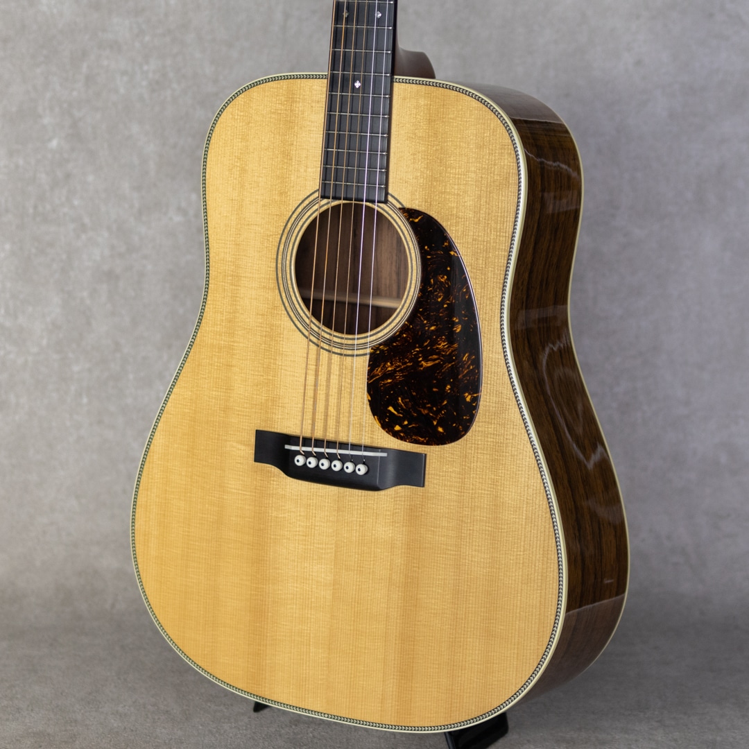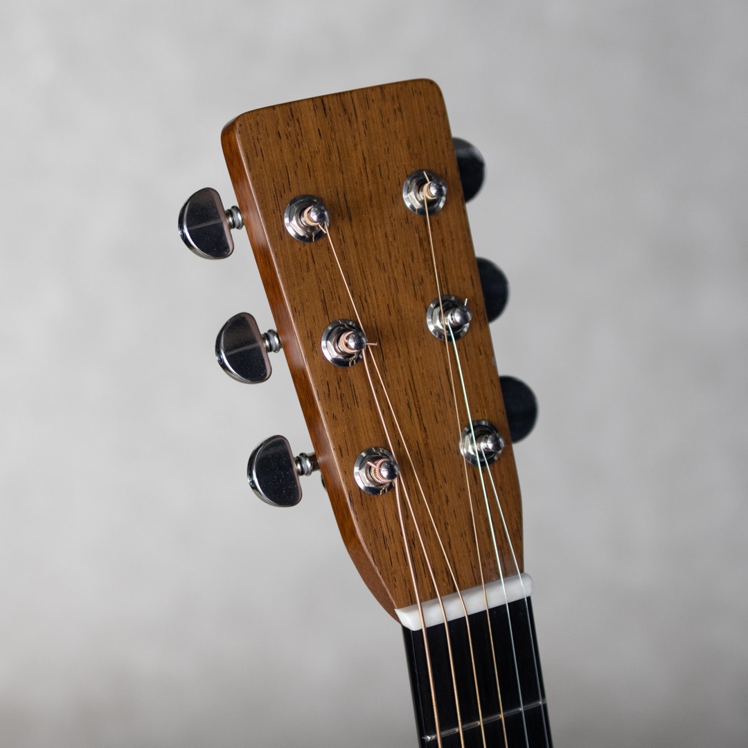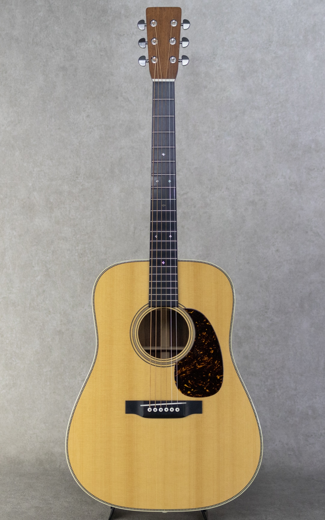 精巧で丈夫な造り、弾き込む程に深化をみせるポテンシャルを秘めた”最高のギター"Headway。本器は名工百瀬恭夫氏製作によるカスタムドレッドノウトモデル"HD-280 G/M Custom"。2019年製USED品。トップに均一な杢目のジャーマンスプルース、サイド&バックには濃淡の美しいマダガスカルローズウッドを使用。ホンジュラスマホガニーネック、エボニー指板&ブリッジ、グローバー102Cペグ、スロッテッドダイアモンドアバロン指板インレイ、塗り込みべっ甲柄セルロイドピックガード、ヘリンボーントリム、アイボロイドバンディング、アジャスタブルネックトラスロッド。トップ構造は百瀬氏オリジナルのリアシフテッド・ノンスキャロップド・Xブレイシングを採用。百瀬氏の確かな木工と優れた素材から造られるギターで、コシとパンチのある前に飛び出すサウンド。しっかりとレンジ感がありながら、スキャロップモデルとは異なる骨太な響き。しっかりとした音量とサスティンを有し、伸びやかで艶やかな響きを魅せてくれます。使用に伴う若干の小傷は見られますが、大きく損なうエグレ傷や板割れなどはなく良好。ネックまわりはもちろん太鼓判の百瀬メイド。とてもコンディションが良く弾きやすいアクションをしっかりと保っています。日本製フラットトップ最高峰クオリティの百瀬メイドの1本。海外製ではなかなか見られない実直な造りと確かな完成度を是非。。オリジナルハードケース付属