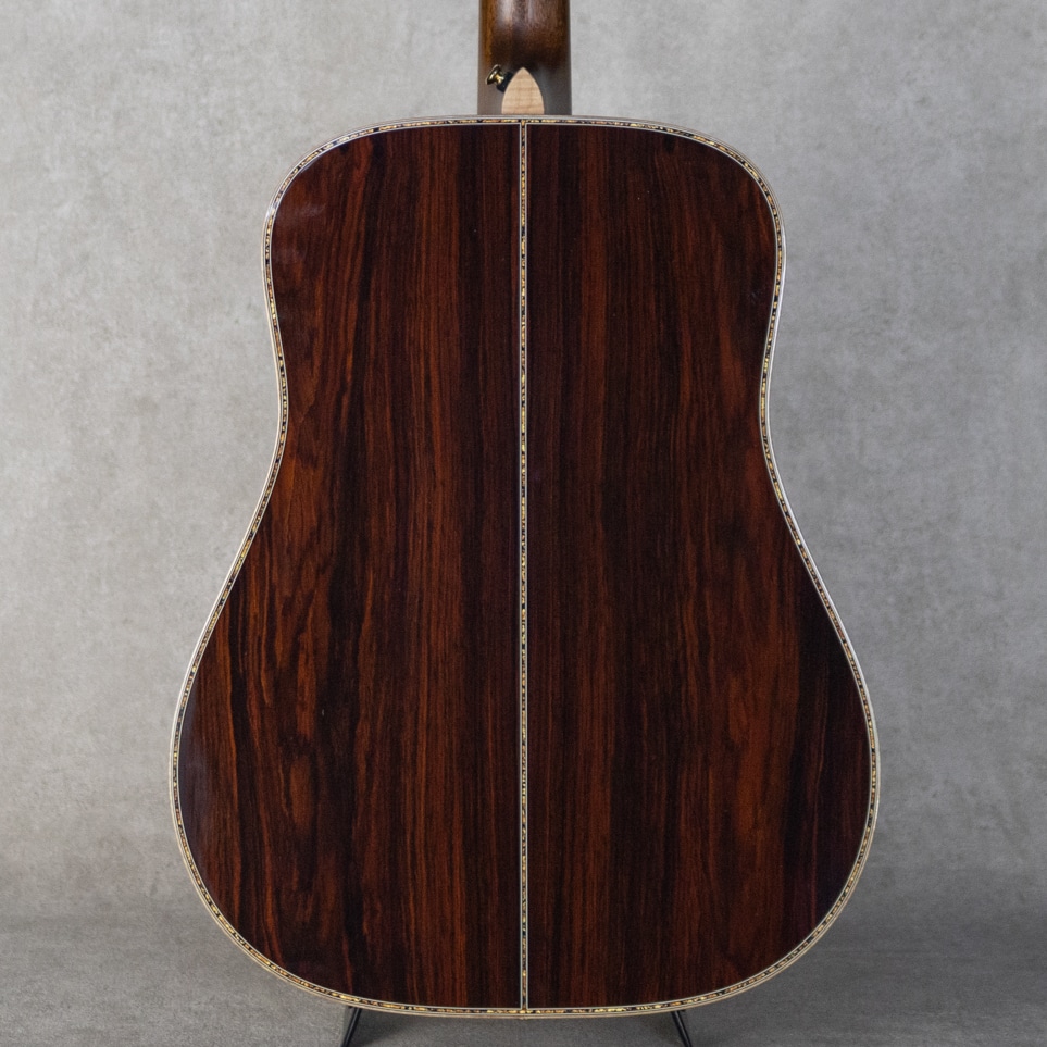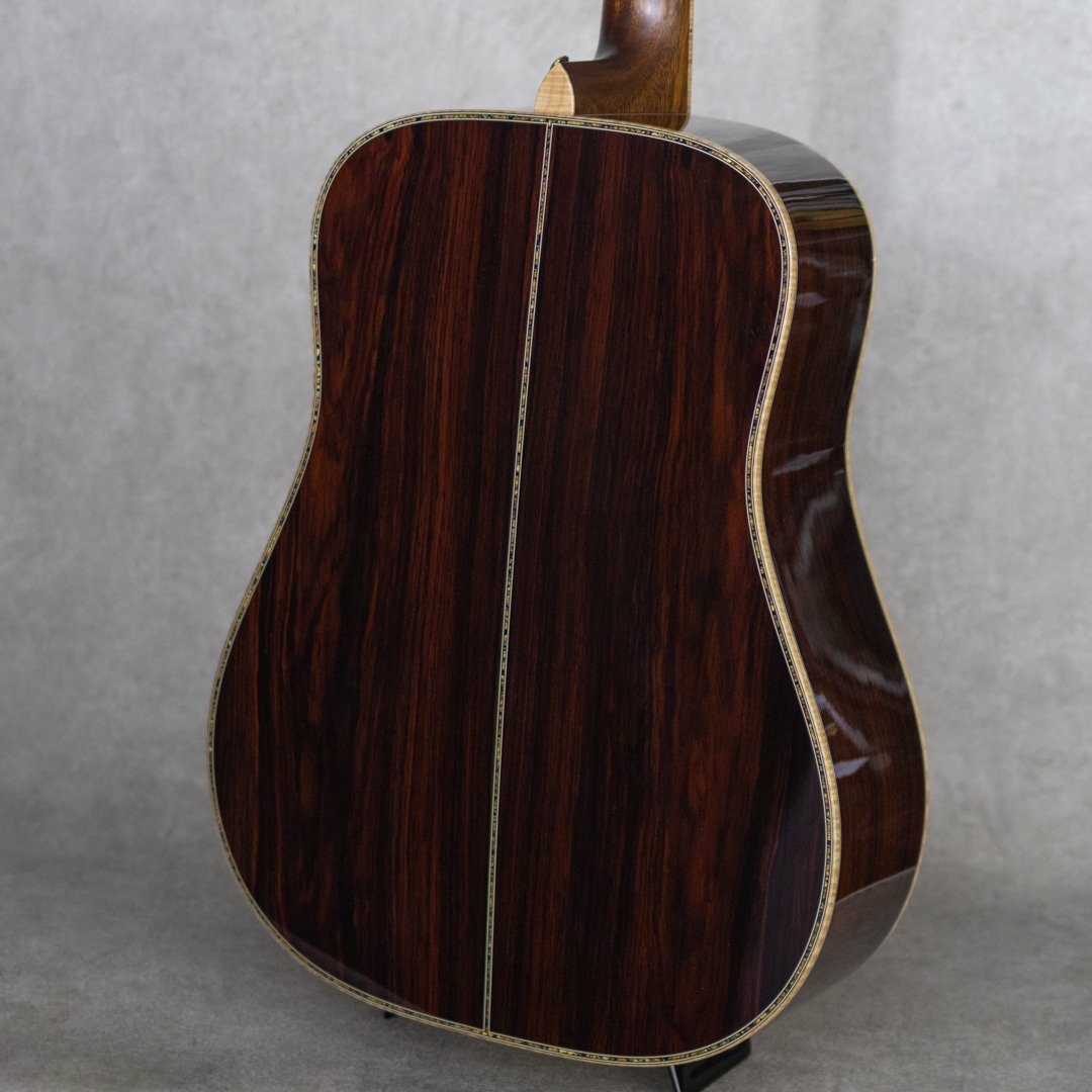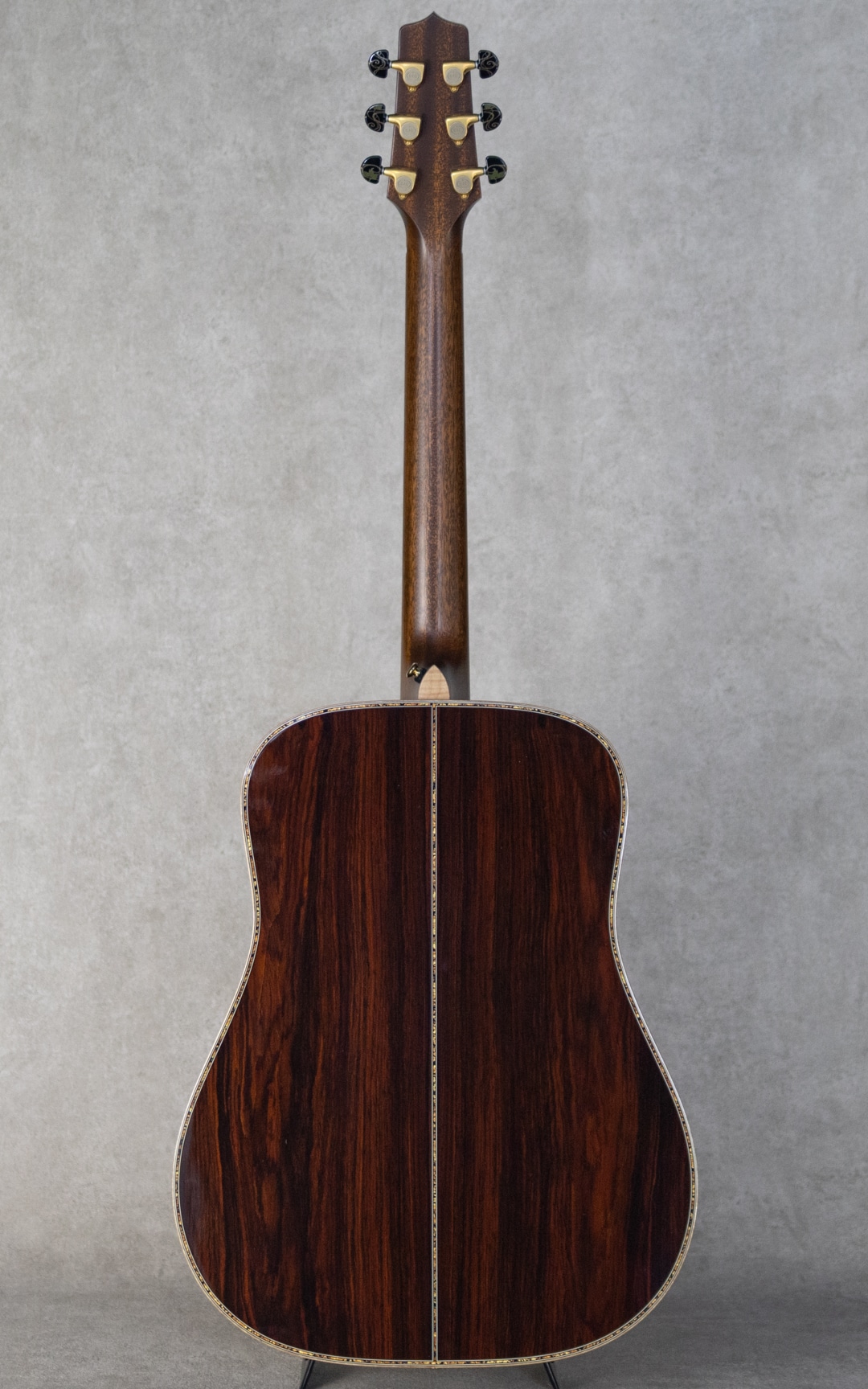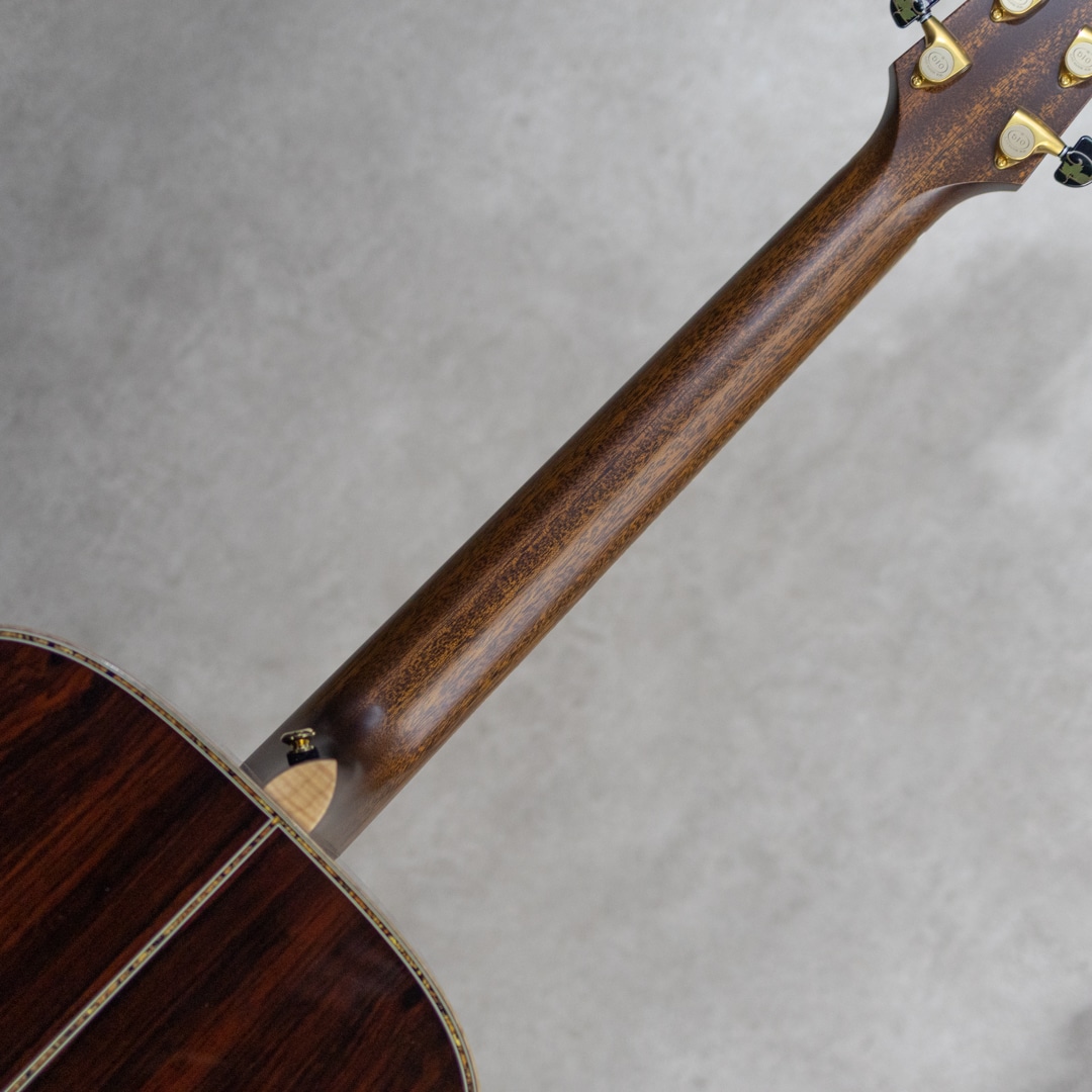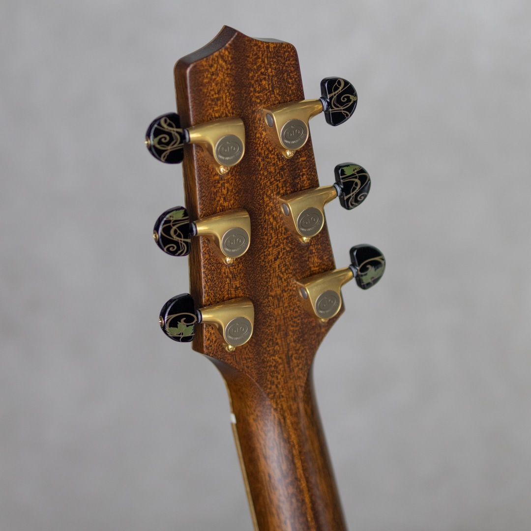 岐阜県中津川市にて製造する”Takamine”。長きにわたりエレアコのトップブランドとして世界をリードする国内屈指のギターメーカーであり、アメリカや日本をはじめ世界各国の著名ミュージシャンが多く愛用する純国産のブランドです。 本器は、高嶺楽器製作所が50周年を記念し発売した記念モデル”50th Anniversary”。2011年製極上USED品。マスターグレードのシトカスプルーストップ、ココボロサイド&バック、マホガニーネック、エボニー指板、フレイムメイプルバインディング、スキャロップドXブレイシング。50本限定で生産された本アニバーサリーモデル。これまでに高嶺楽器製作所が歩んで来た”道”をコンセプトにしており、"時の流れ"を感じさせる色とりどりの紅葉と流れる水紋がヘッド・指板・ピックガードにインレイでデザインされています。50周年を祝う金婚式にちなんでゴールドカラーで統一されており、トリムパーフリングには西陣織技術などで用いられる”引箔”を使用し、ペグボタンには漆絵により水紋が描かれる拘りの詰め込まれた1本です。生音でもしっかりと音量感の得られる繊細なサウンドに仕上がっていますが、ラインサウンドも新開発の”TLD-2”を搭載。”TLD-2”は従来のオンボードイコライザーなどはなく、エンドジャック部に内蔵されたプリアンプとプリEQにより、シンプルかつ実用的なサウンドに仕上げられています。使用感はもとより、傷ひとつ見受けられない極上コンディションの本器。ネックまわりもとても良好で、新品同様のコンディションを保っています。アニバーサリーモデルとしてはもちろん、コレクションとしてもステージ映えとしても抜群の存在感を放つ、タカミネの1本。是非、お見逃しなく。。新品時に付属する、巻物証書、同デザインピック型ペンダント、本モデル専用の特別製オリジナルハードケースも全て付属するコレクターピースです。