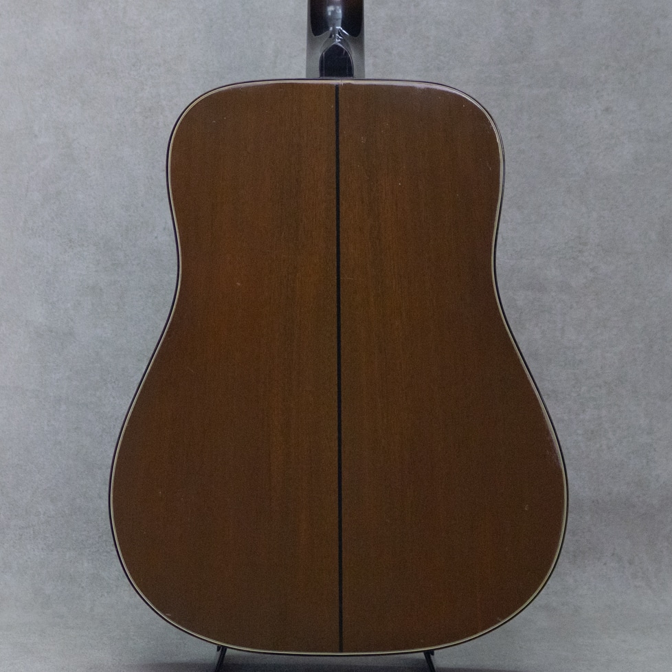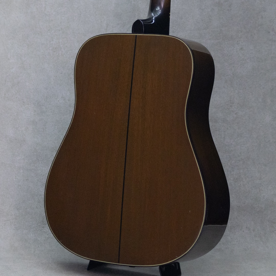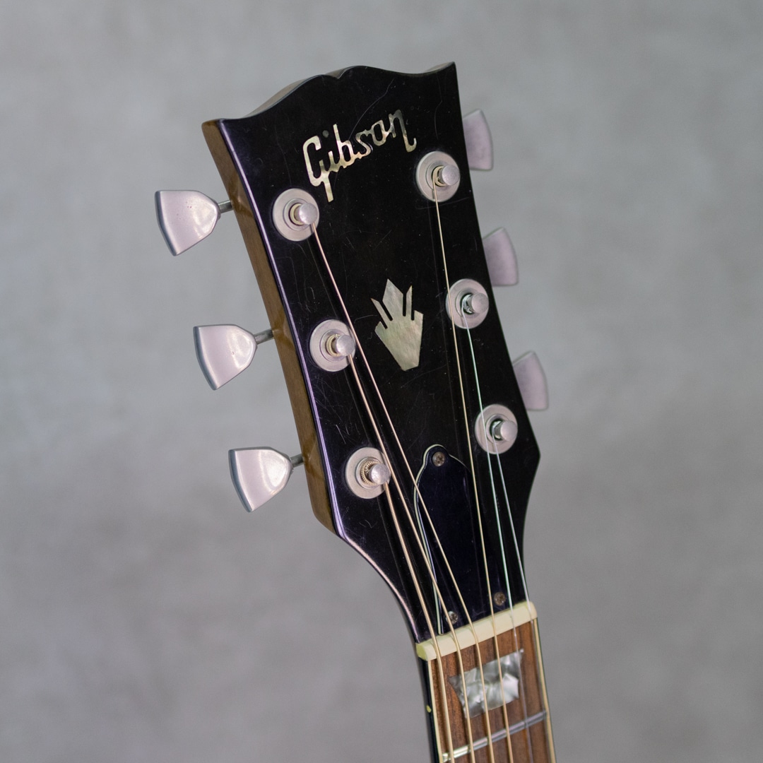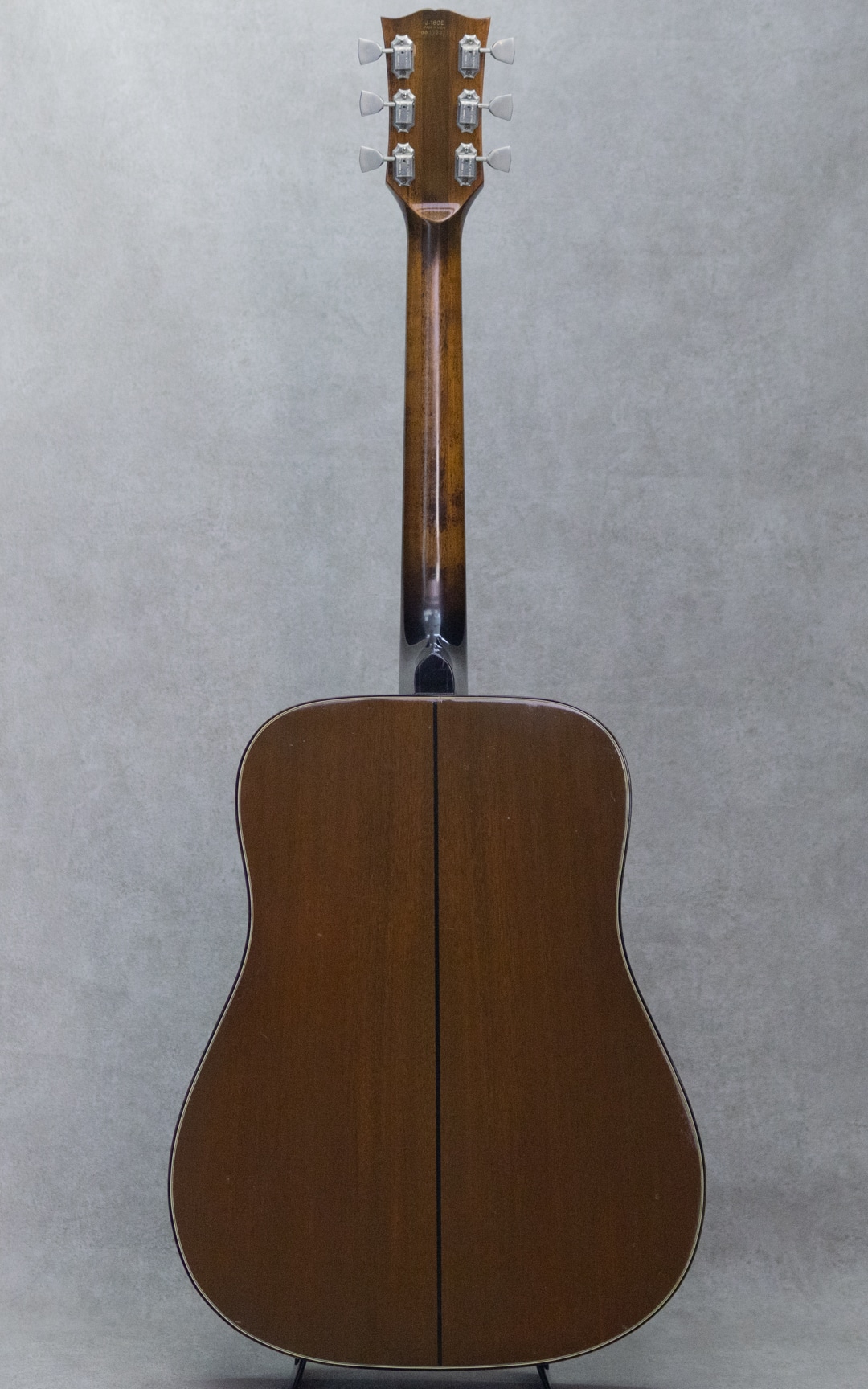 ジョン・レノンとジョージ・ハリスンがお揃いで入手したギター、ビートルズギアとしてあまりにも有名な機種である"J-160E"。1951年にアンサンブルの中でも音量で負けない様にと発表された世界で始めてピックアップが搭載されたフラットトップ"CF-100"。その基本コンセプトを受け継いだ"J-160E"は1954年に発表されました。70年代に入りスクエアショルダーに変更され、スモールガードに変更されルックスもイメージも変わりロックになった1本。本器は、イカリ肩のロックなフェイスを持つ70s”J-160E”。1976年製USED品。スプルーストップ、マホガニーサイド&バック、メイプル3ピースネック、ローズウッド指板&ブリッジ、オリジナル"クルーソンデラックス"ペグ、クラウンヘッドロゴインレイ、ディッシュパーロイド指板インレイ、オリジナルスモールピックガード、ローズウッドバインディング。15フレットジョイント、ワンボリュームワントーンのP-90、ナット幅約42.9mm、渋いタバコサンバースト。他のギブソンモデル同様にボディシェイプが変更され、ダブルXブレイシング構造とオールソリッドマテリアルを採用された本器。ゴシャっとした荒々しくワイルドなサウンドとルックス。掻き鳴らせばロックが止まらないがクールな1本。若干の小傷や一部タッチアップ補修が見られますが、全体的に美しいコンディションを保たれた本器。ネックコンディションも良好で弾きやすいアクションを保っています。後付けでL.R.Baggs i-Beam Activeが搭載されており、ボディサイドのジャックからはオリジナルP-90サウンドを、エンドジャックからはi-Beamサウンドをお楽しみいただけます。このルックスに惹かれる方も多い70s160E。グッドコンディションの1本、是非要チェックください。オリジナルハードケース付属。