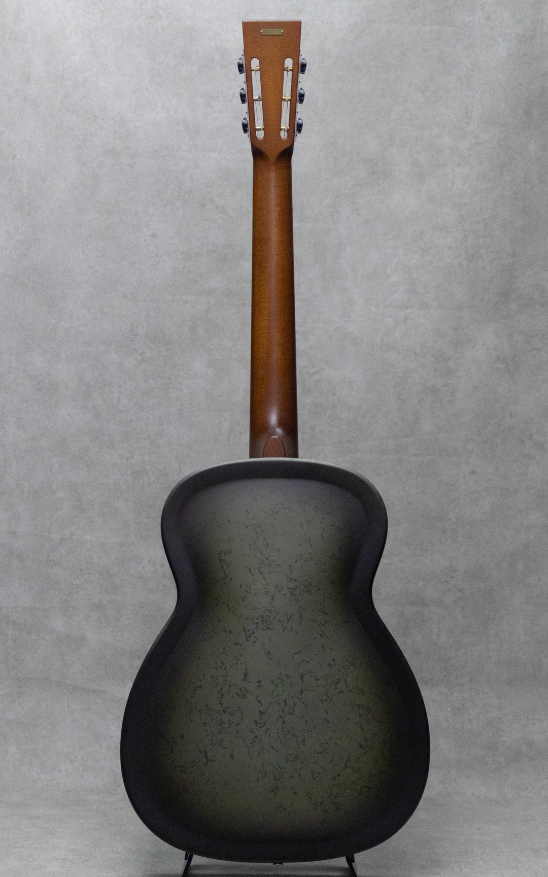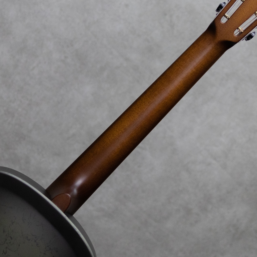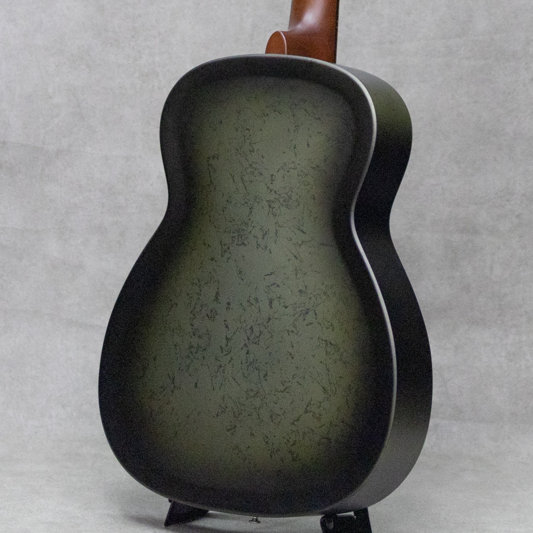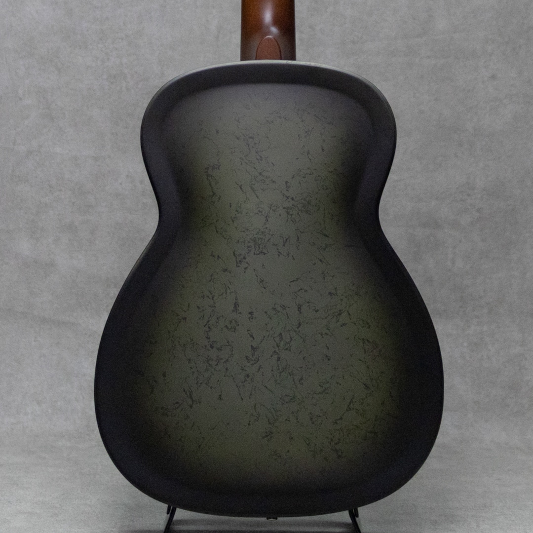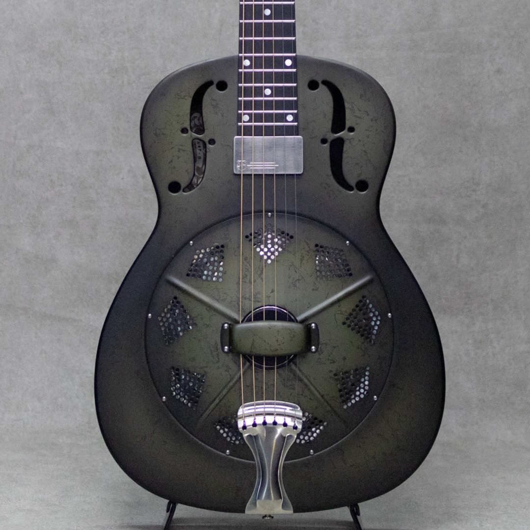 1932年設立のリゾネーターギターの雄ナショナル。管楽器やピアノの音量に負けないギターを目指し開発された"リゾネーターギター"は、その後のエレキギター台頭により影を薄めるものの、ブルース、カントリー、ハワイアン、ブルーグラス等のジャンルにおいては、古き良きアメリカの郷愁を誘うルックスとサウンドが永く支持をされ続けています。ナショナルギター社は四十年代に一度倒産してしまいましたが、1988年にナショナル・リゾフォニック・ギターズ(National Reso-Phonic Guitars, Inc)として復活し、今も現代品に触れることができます。本器NRPは、ボディトップに1つの共鳴板を持つ構造"シングルコーン"タイプ。1930年に登場したベーシック機種"Duolian"を復刻したモデル。スロテッドヘッド、マホガニーネック、エボニー指板、スチール製ボディ。スチール製のボディは無骨でアーミーな印象もある"Black Rust"カラーにて現代的ルックスに。また本器は、オプションでNational Slimlineピックアップを搭載、アンプ等への出力も容易の為ライブギア等としても即戦力です。ボンっと野太いアタックの効いた単音単音はメタルボディによる独特にミドルの効いたラウドなトーンを持ち、無骨に響く音量感をもって泥臭くブルージーに"あの音"を存分に楽しめる一本。クリアな出力のピックアップによって本体のキャラクターを十二分にアンプから出力も可能。こちら極細かな擦れ等はあるものの、ほとんど使用感を感じさせない程の美品コンディション。ネックの調整を含め各所コンディションも良好で、新品同様の演奏性でお楽しみいただけます。国内での取扱数も少なく、なかなか手にできる機会も少ないナショナル。ぜひお見逃しなく。オリジナルハードケースが付属。