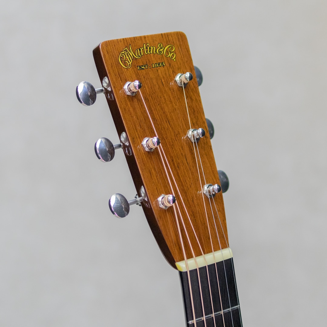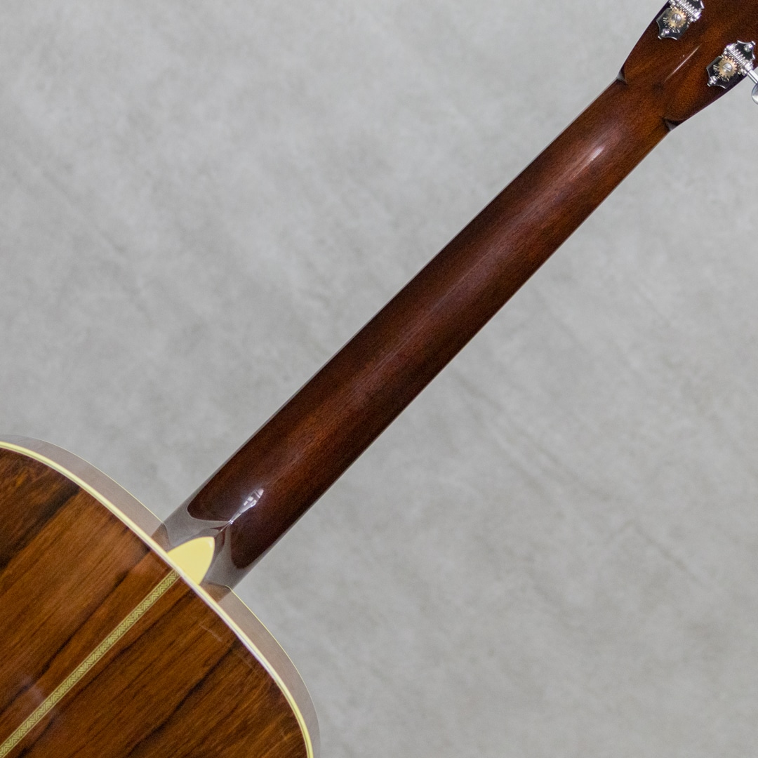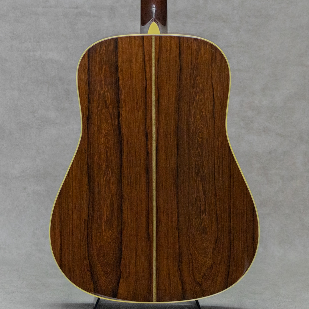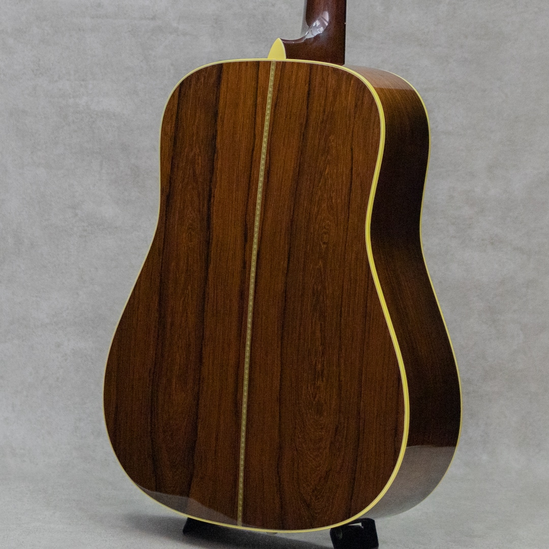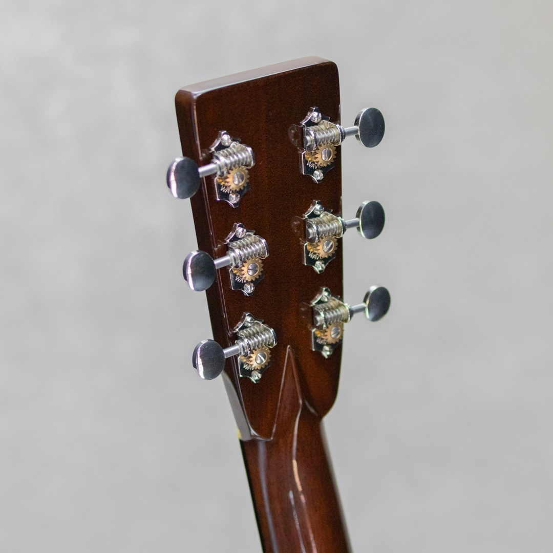 いつの時代も変らない憧れ『Martin Guitar』。今なおヴィンテージギターとして愛され続けるマーティンギターは、近年の優れた技術により数々のモデルが復刻されてきました。その中でも抜群の完成度を誇り近年注目を集めるのが『Authentic Series』。本器は、1941年製の"D-28"を忠実に復刻した"D-28 Authentic 1941”。Xブレイシング配置位置がフォワードシフトより変更になり、ナットワイドも細くなった1941年製をフィーチャーした本モデルは、ナロウネック&リアワードシフテッドXブレイス最終期の14fジョイント仕様。2013年製極上USED品。うっすらとベアクロウ杢が揺らめく美しいアディロンダックスプルーストップ、ハカランダ杢がとても美しいマダガスカルローズウッドサイド&バック、ジニュインマホガニーネック、エボニー指板&ブリッジ、オーバルウェバリーオープンバックペグ、マダガスカルローズウッド化粧板、スロッテッドダイアモンド指板インレイ、塗り込みデルマーピックガード、ヘリンボーントリム、アイボロイドバインディング、ジグザグバックストリップ、スチールTバーロッド、ニカワ接着、トップ構造は1941年式のリアワードシフテッドスキャロップドXブレイシング。ヘッドの厚みやバックストリップ、指板の厚み、側板の割れ止め、指板エンドとブリッジ形状など、細部に渡るまでが忠実に復刻されています。シリアルスタンプも当時そっくりにデザインされたマニアックなリメイクギター。肉厚でありながら歯切れ良く分離の良いプリウォーサウンド。とてもバランスが良く、扱いやすいサウンドです。内部構造、使用材、塗装、ピックガード、接着剤など、当時の製造工程を研究し、ゴールデン・エラと呼ばれる時期のニッパチを完全な手作りで再現した1本です。ごくごく僅かな小傷は見られるものの、割れなどなく経年感を伺いにくい良好なコンディションの本器。ネック周りも良好で弾きやすいアクションをしっかりと保っています。マーチンギターの進歩を分かりやすく堪能できる完成度の高い1本。オールドスタイルのニッパチをお探しの方は、是非この機会に。オリジナルハードケース付属
