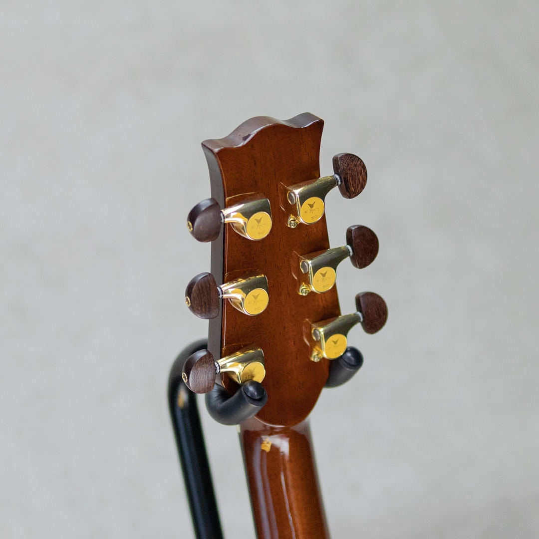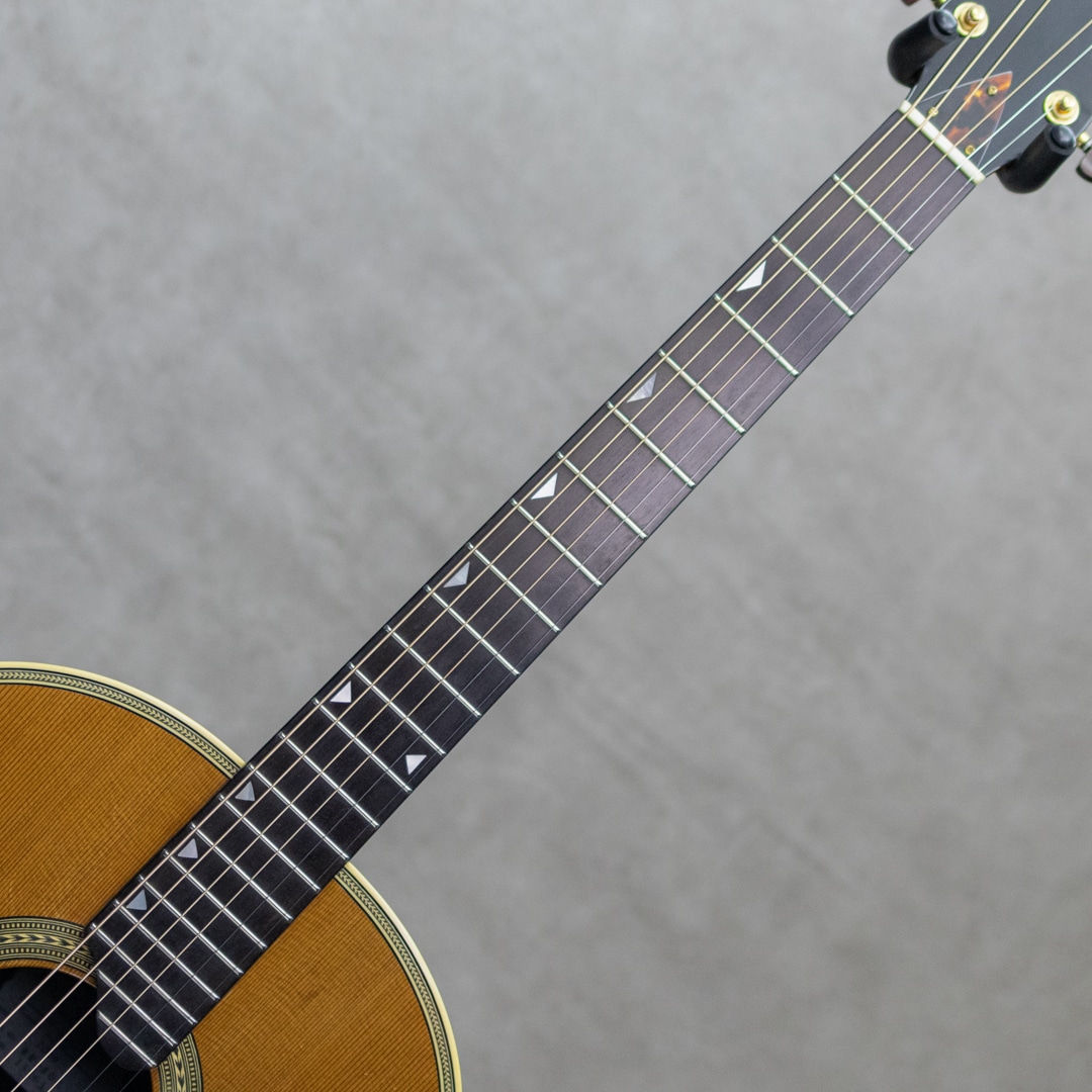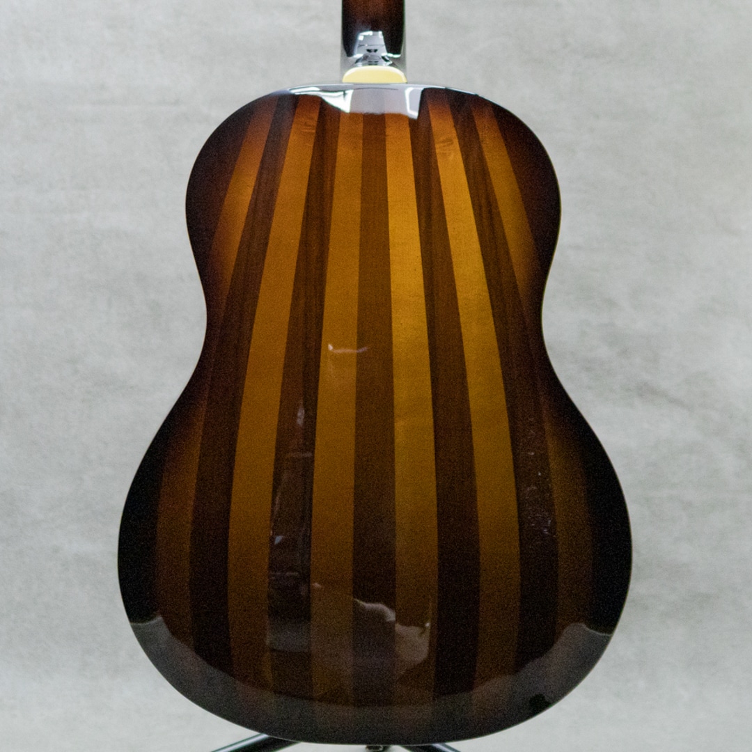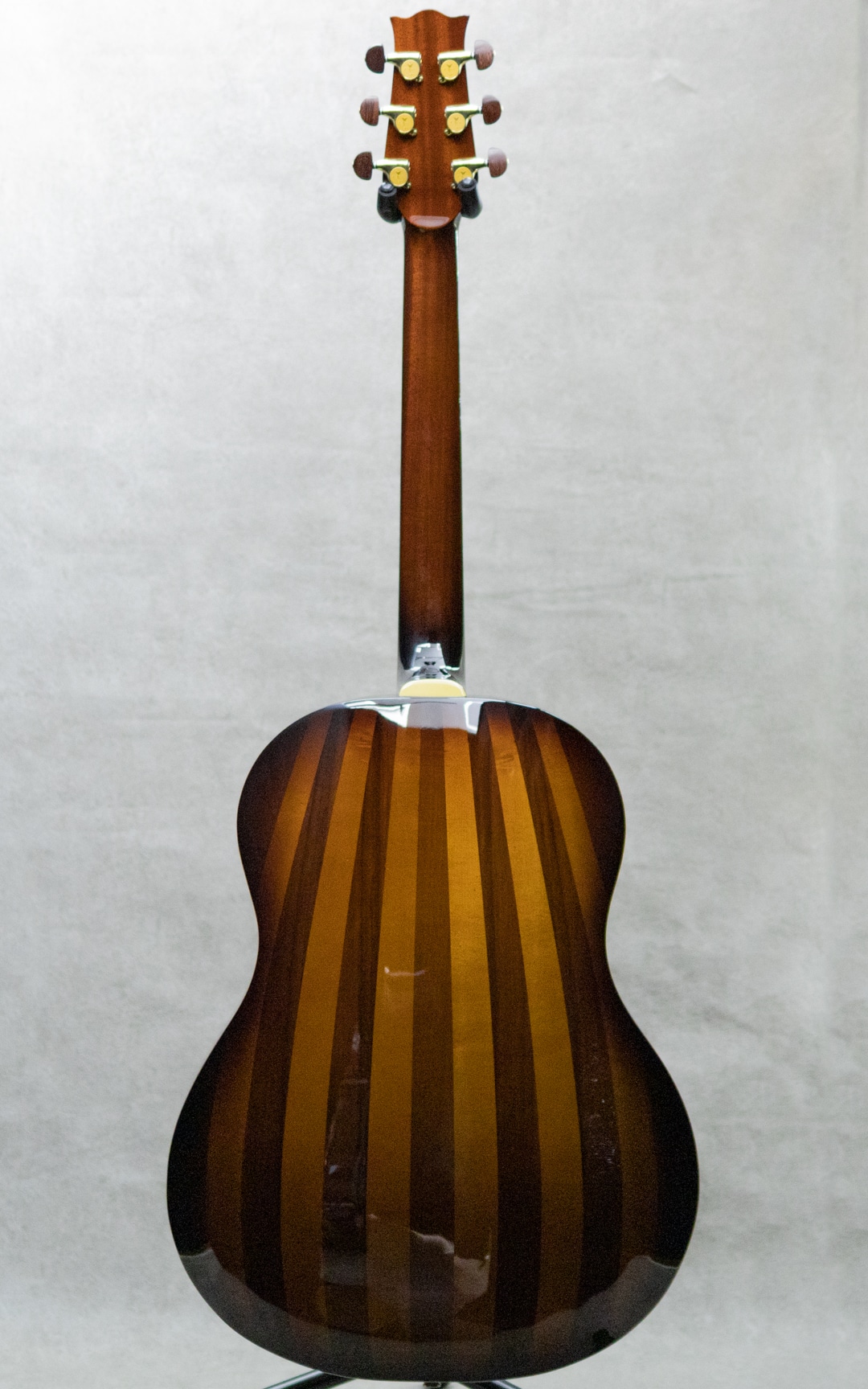 岐阜県可児市にて製作されるヤイリギター。大規模な機械化は抑え、職人による手作業を中心に30名ほどの少人数で一日に約20本程度の本数を製作しています。木工精度も高く国産ならではの安心感から高い評価を得る純国産ブランド。本器は、高い木工技術で組み込まれた木製ラウンドバックの”RR-10E”。2004年製USED品。シダートップ、メイプル&ウォルナットサイド&バック、マホガニーネック、エボニー指板、ハカランダブリッジ、クリアーピックガード。リラコード樹脂のボウルバックギターが流行った時代に、同スタイルを木製で組み上げたモデルをリバイバルイシューした本器。クリアで澄んだ響き。ラウンドバックの影響で指向性が集約された響きで、唯一無二のサウンドです。若干の小傷は見られますが、大きくえぐるような傷はなく良好なコンディション。ネックまわりもとても良好で、弾きやすいアクションをしっかりと保っています。また、イントネーションを補正するためにサドル溝の掘り直しがされています。なかなか見かけないK.ヤイリのラウンドバックモデル。お手元のコレクションにどうぞ。。オリジナルハードケース付属。