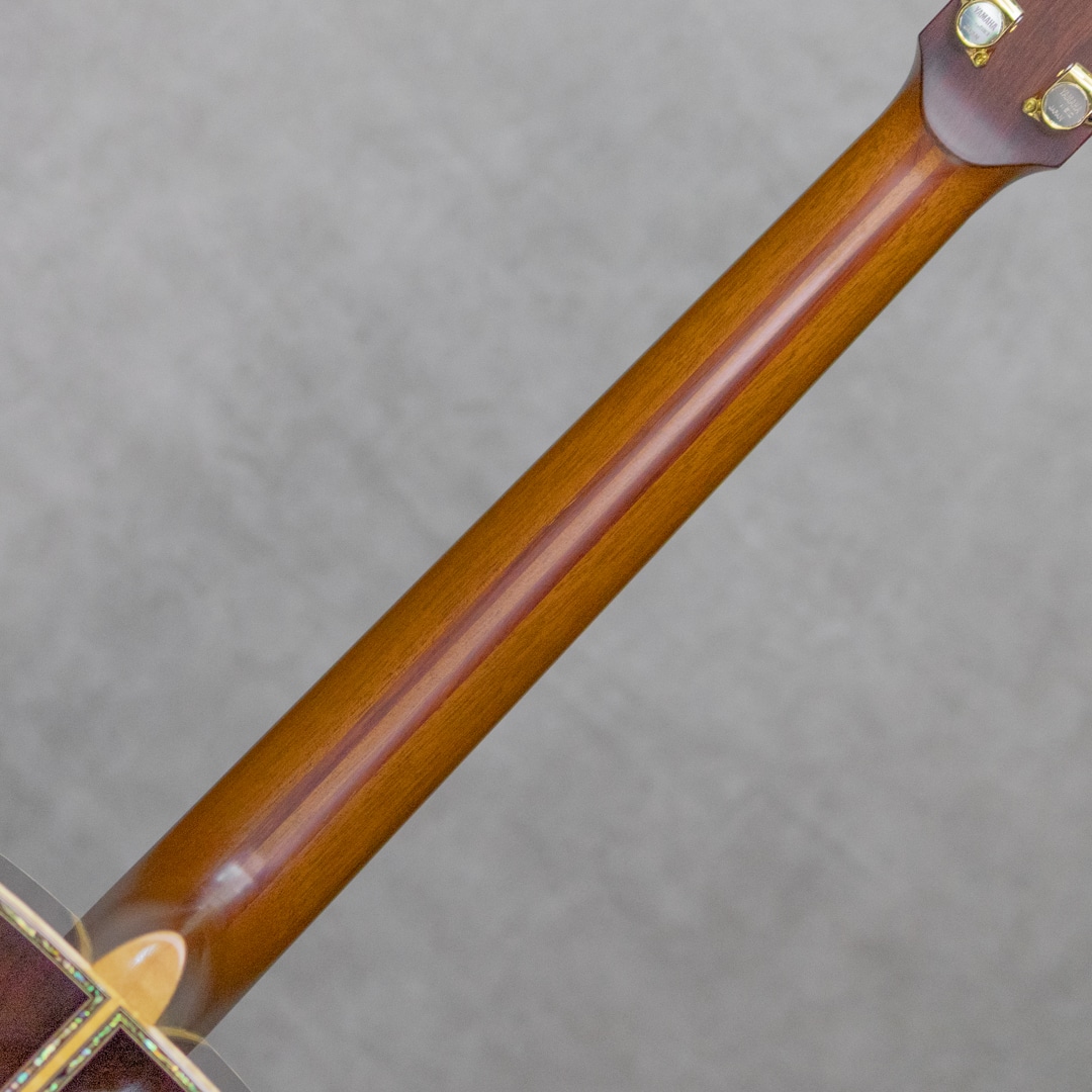 ヤマハを代表するギターとして、数多くの一流アーティストをはじめ、多くのギターファンに愛されてきたLシリーズ。“FG”シリーズの上位機種として1974年にL-31を発表して以来、時代のミュージックシーンを彩り、数多くのアーティ ストやギターファンに愛され、日本の音楽シーンを支えて参りました。"L=Luxury(豪華)"を冠にした本シリーズは、伝統を継承しながらも現代のニーズを反映させ、細部にわたり改良を施されたシリーズ。本器は、ヤマハLシリーズ最上位機種のハカランダモデル"LL86 Custom”。2014年以降はカスタムオーダーがストップされていますが、本器ではジャーマンスプルースをトップに採用されたレアなショップカスタムモデル。ニアミントコンディションの2019年製極上USED品。杢目の黄色味が美しく揺らめく極上のジャーマンスプルーストップ、ウェービーグレインがフィギュアドを帯びた極上のハカランダサイド&バック、マホガニー&パドゥック5プライネック、ハカランダ天神板、エボニー指板&ブリッジ、アバロン指板インレイ、アバロンヘッド&ボディトップバックトリムインレイ、アバロン2重ロゼッタ、フレイムメイプルバインディング、クリアピックガード、TM67Gゴールドペグ。最高峰モデルにふさわしいゴージャスなルックスと圧巻のサウンド。イングルマンスプルーストップに比べ、弾性に富んだパンチのある豪快な音色で、レスポンスも抜群。ハカランダとの相性も素晴らしく、ストロークで弾けばガツンとした突き抜けるような響き、爪弾けば豊かな倍音を含んだ幅広いレンジ感をご堪能頂けます。使用感もほとんど感じられず、非常に美しい状態を保ったニアミントコンディション。ネックの状態含め、プレイコンディションも大変良好。ラベルにはヤマハアコースティックギターのプロデュース、現Lシリーズの設計を手掛ける”桜井洋”氏のサインが施されております。現在”LL86”自体も受注生産体制で流通も少なく、またジャーマントップはほとんど見られないレアアイテムのひとつ。ニアミントコンディションのコレクタブルアイテムです。お見逃しなく。。オリジナルハードケース付属