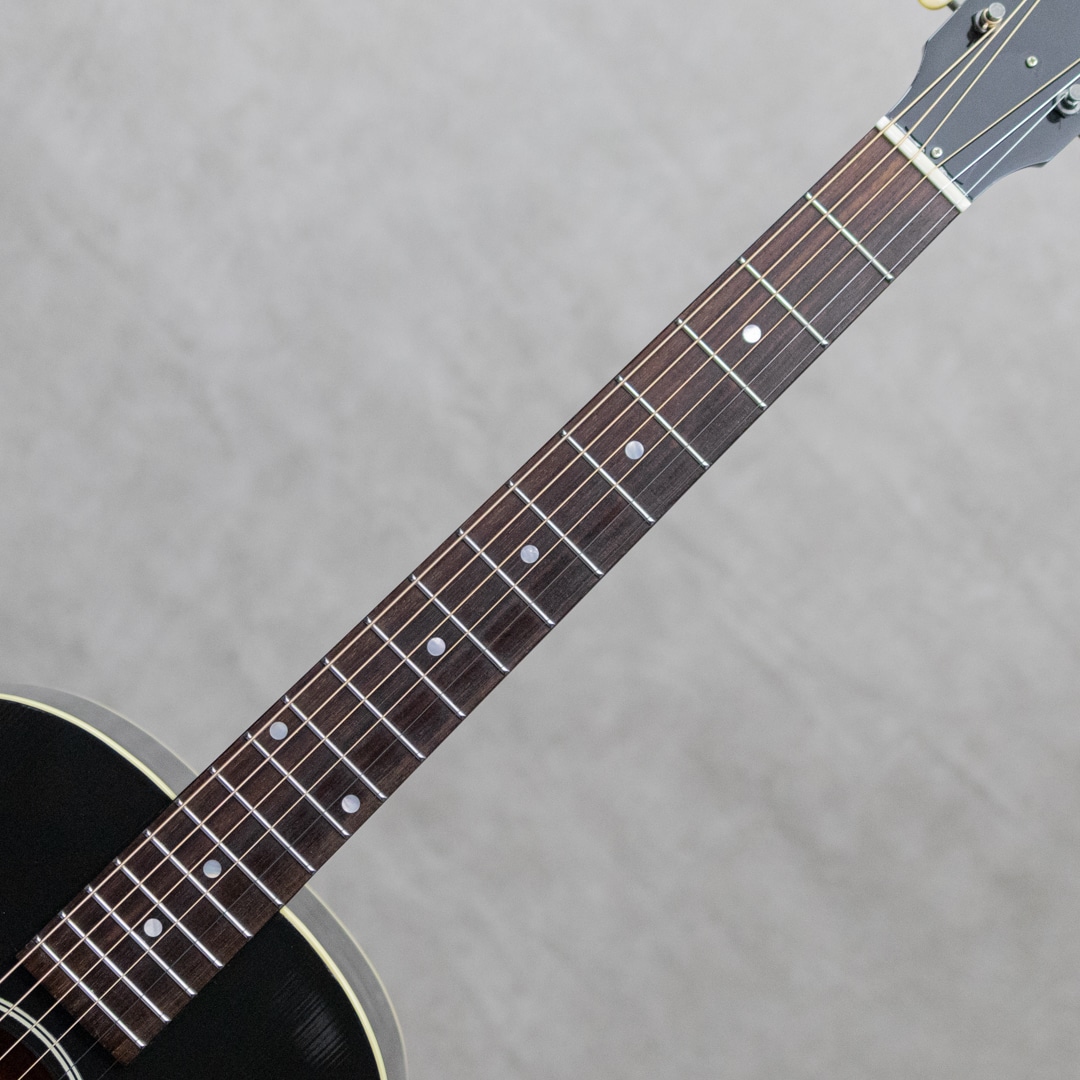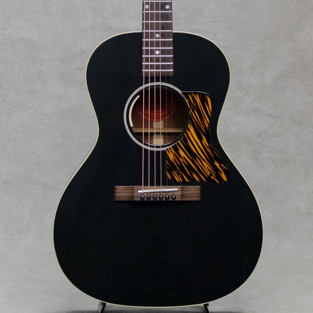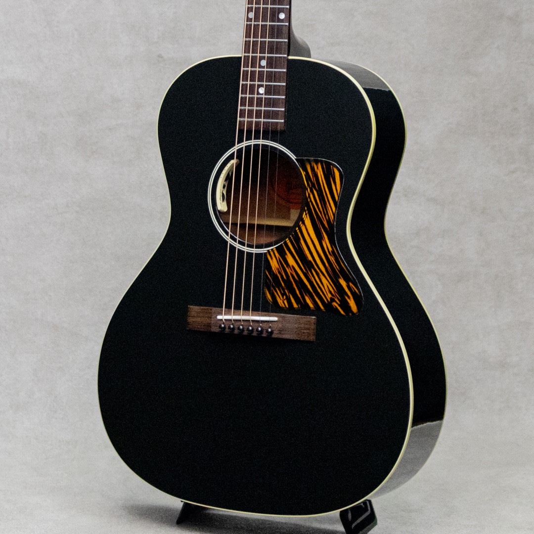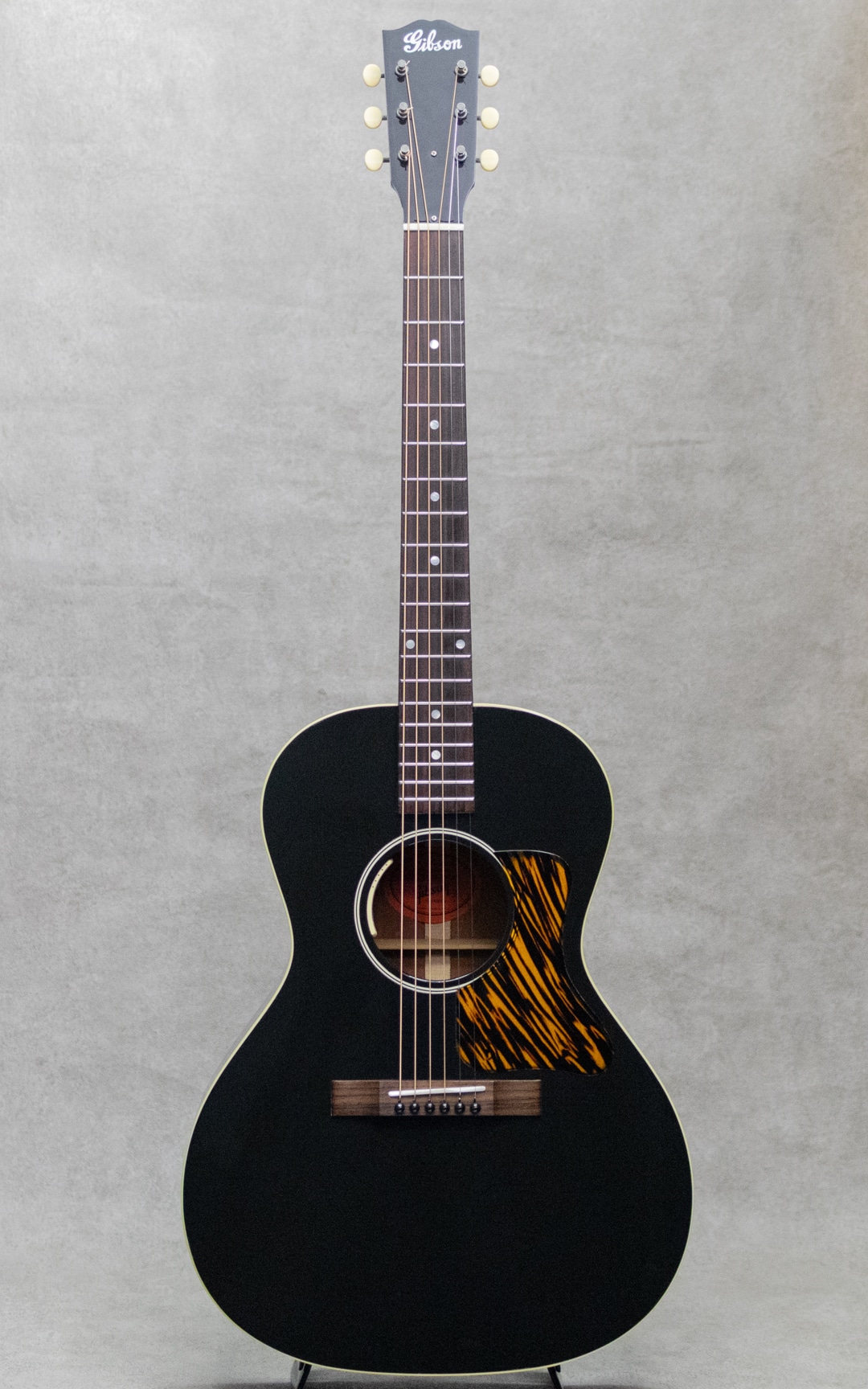 ギブソンが誇る銘器、”L-00”。1931年頃に発売開始、1932年にカタログ掲載され1945年にディスコンとなったスモールモデルで、数多くのミュージシャンに愛され今なおその人気が高くスモールギブソンのスタンダードとして継続されているアイコニックなモデル。本器は、30年代スタイルをしっかりと踏襲した”1930's L-00 Classic Ebony”。アディロントップにブラックカラーのリミテッドモデル。L.R.Baggs Anthem PUを搭載した実践仕様。2015年製USED品。アディロンダックスプルーストップ、マホガニーサイド&バック、マホガニーネック、ローズウッド指板&レクタングルブリッジ、シングルリングロゼッタ、ファイアーストライプピックガード、ゴールデンエイジオープンバックペグ、ナット幅43.8mm、エボニーブラックフィニッシュ。30年代のエボニーブラックの雰囲気を再現すべく、ピックガードの下には黒色塗装をせずシースルーで木目が見える本格的な外観を持つ本器。小気味よく軽快なサウンド。フィンガータッチでも十二分にドロ臭くノスタルジックな雰囲気を楽しんでいただけます。また、後付でピックアップがインストールされており、L.R.Baggs社のハイエンドモデルAnthemを搭載。骨太なサウンドからエアリーなトーンまで広く網羅してくれる頼れるステージモデルに仕上がっています。若干の使用に伴う小傷や擦り傷は見られますが、大きくえぐるようなものはなく良好。割れもなく良いコンディションを保っています。またネックまわりも良好で、弾きやすいアクションをしっかりと保ってくれています。クールなルックスと実践的なサウンド。小脇に抱えるリビングギターにも、旅に連れ回す頼れる相棒にも、オススメ度グッドなL-00モデルです。オリジナルハードケース付属。その他詳細はお問い合わせください。