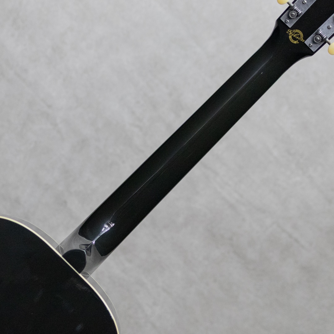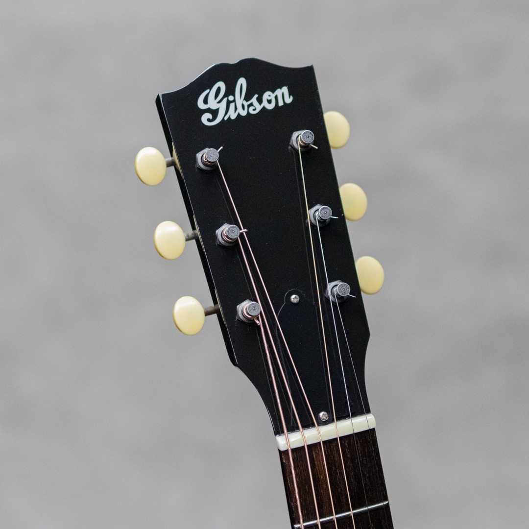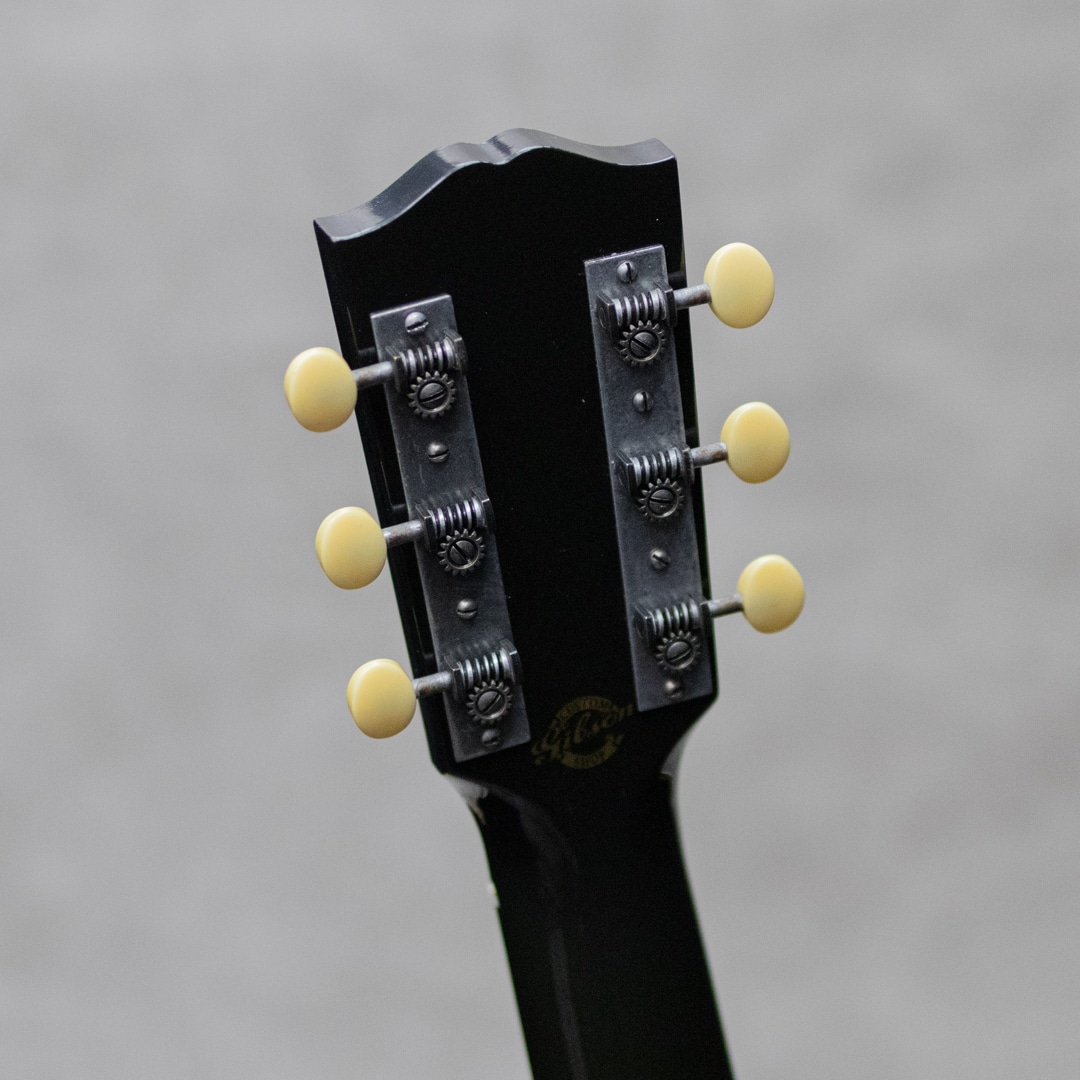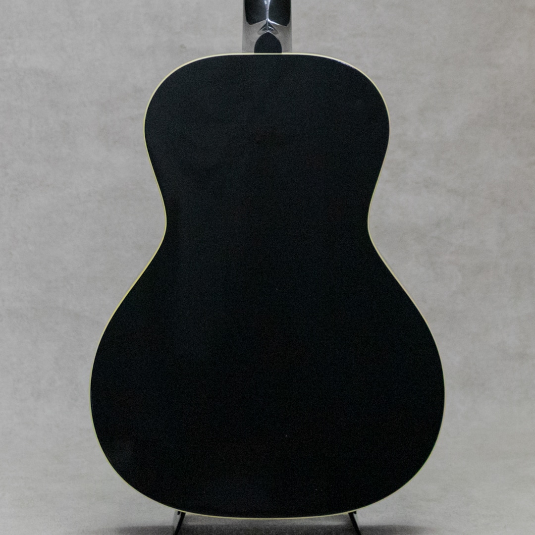 ギブソンが誇る銘器、”L-00”。1931年頃に発売開始、1932年にカタログ掲載され1945年にディスコンとなったスモールモデルで、数多くのミュージシャンに愛され今なおその人気が高くスモールギブソンのスタンダードとして継続されているアイコニックなモデル。本器は、30年代スタイルをしっかりと踏襲した”1930's L-00 Classic Ebony”。アディロントップにブラックカラーのリミテッドモデル。L.R.Baggs Anthem PUを搭載した実践仕様。2015年製USED品。アディロンダックスプルーストップ、マホガニーサイド&バック、マホガニーネック、ローズウッド指板&レクタングルブリッジ、シングルリングロゼッタ、ファイアーストライプピックガード、ゴールデンエイジオープンバックペグ、ナット幅43.8mm、エボニーブラックフィニッシュ。30年代のエボニーブラックの雰囲気を再現すべく、ピックガードの下には黒色塗装をせずシースルーで木目が見える本格的な外観を持つ本器。小気味よく軽快なサウンド。フィンガータッチでも十二分にドロ臭くノスタルジックな雰囲気を楽しんでいただけます。また、後付でピックアップがインストールされており、L.R.Baggs社のハイエンドモデルAnthemを搭載。骨太なサウンドからエアリーなトーンまで広く網羅してくれる頼れるステージモデルに仕上がっています。若干の使用に伴う小傷や擦り傷は見られますが、大きくえぐるようなものはなく良好。割れもなく良いコンディションを保っています。またネックまわりも良好で、弾きやすいアクションをしっかりと保ってくれています。クールなルックスと実践的なサウンド。小脇に抱えるリビングギターにも、旅に連れ回す頼れる相棒にも、オススメ度グッドなL-00モデルです。オリジナルハードケース付属。その他詳細はお問い合わせください。