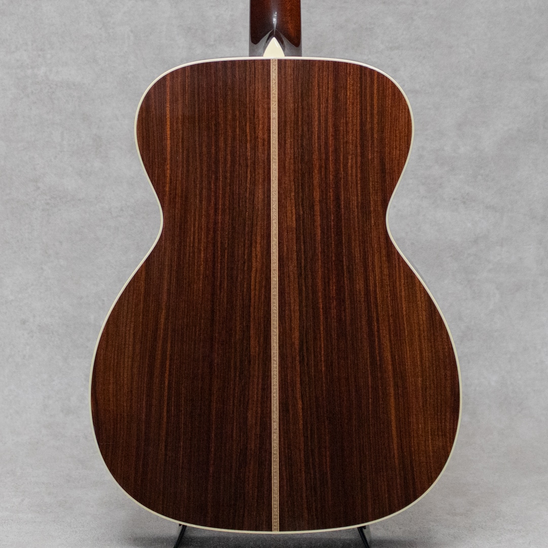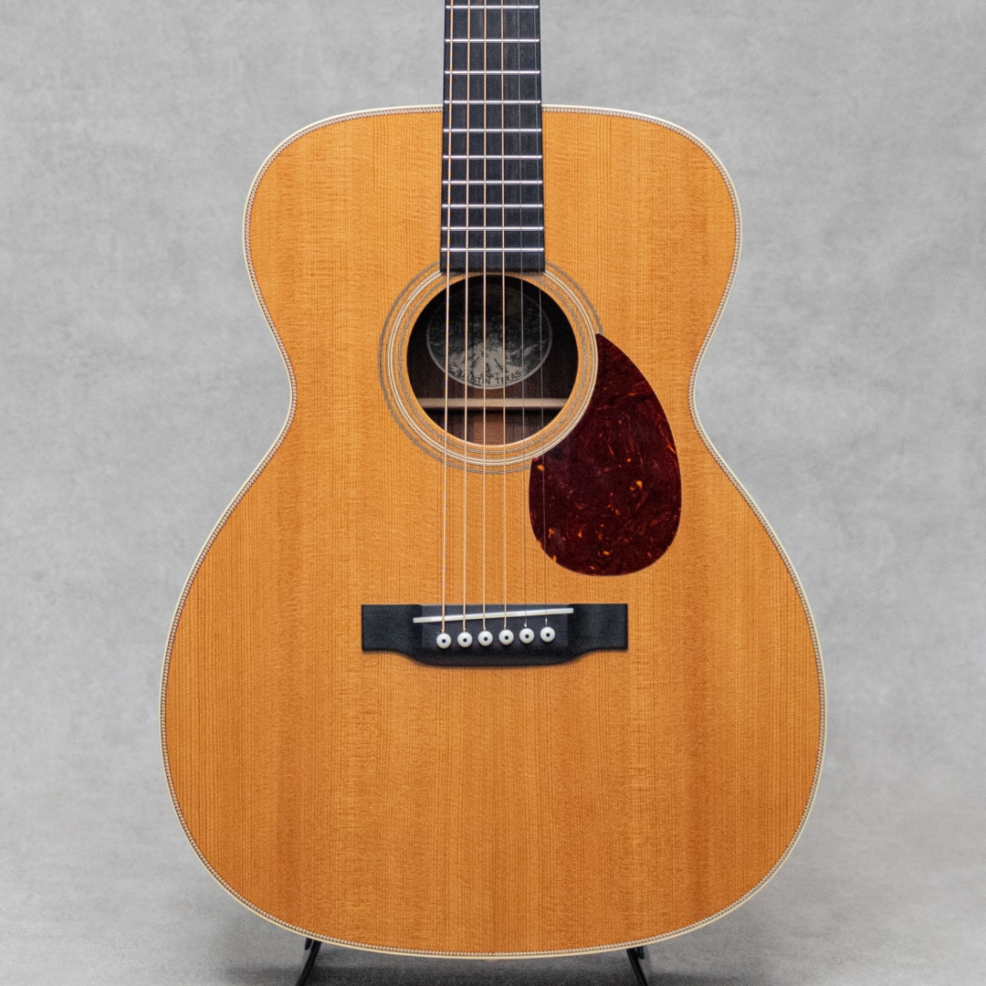 世界的にもっとも高い評価を得ているブランドの一つであるコリングスギター。コリングスの高く保たれたその完成度は、プレイヤーがその楽器を手に持つだけで見惚れてしまう美しさを持ち、音を出せば納得する響きを放ちます。本器は2016年に導入されたビル・コリングスのギター製作へのルーツに遡るトラディショナル・シリーズ、”OM2HT Traditional/Torrefied Top”。トリファイドトップを採用した至極の1本。ビンテージスタイルケースも残された2016年製極上USED品。トップに柾目痕がゆらめくトリファイド・シトカスプルースを、サイド&バックには杢目がゆらめく美しいインディアンローズウッドを採用。ホンジュラスマホガニーネック、エボニー指板、エボニーブリッジ、ウェバリーオープンバックペグ、べっ甲柄ピックガード、ヘリンボーントリムパーフリング、ジグザグバックストリップ、アイボロイドバインディング、トップ構造は本シリーズ専用カスタムのトラディショナル・プリウォースキャロップブレイシング&ノンタングブレイス。より倍音を含むトラッドなトーンを描く、スタンダードモデルとは明確にサウンドデザインの異なる本器。コリングスならではのコシと芯のあるサウンドはそのままに、倍音と空気感をしっかりと含む箱鳴り感は、オールドを愛すファンも唸りをあげる完成度。分離の良い明瞭なトーンでいながら、優しく包み込まれるハーモニーは、ビンテージのそれをしっかりと踏襲されています。大きく目立つ使用感もなく、とてもキレイな状態で保たれた本器。ネックまわりは言わずもがなのコリングスクオリティデ、弾きやすいアクションをしっかりと保っています。発売当時にビルのとてつもないこだわりで再現製作されたビンテージスタイルケースも付属しており、このケースだけでも欲しいと言うファンが多くいるほどの完成度と人気を持つケースですが、現在は残念ながら生産終了となってしまいました。そんな当時のケースやトリファイドトップなど、トラディショナルシリーズを堪能してもらうには十二分な要素を持ち合わせた1本。是非要チェックください。