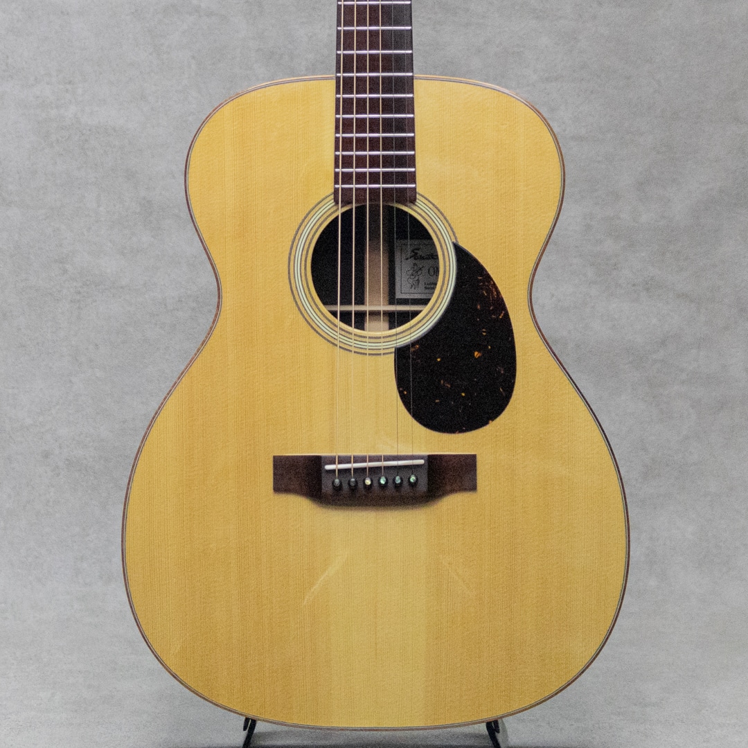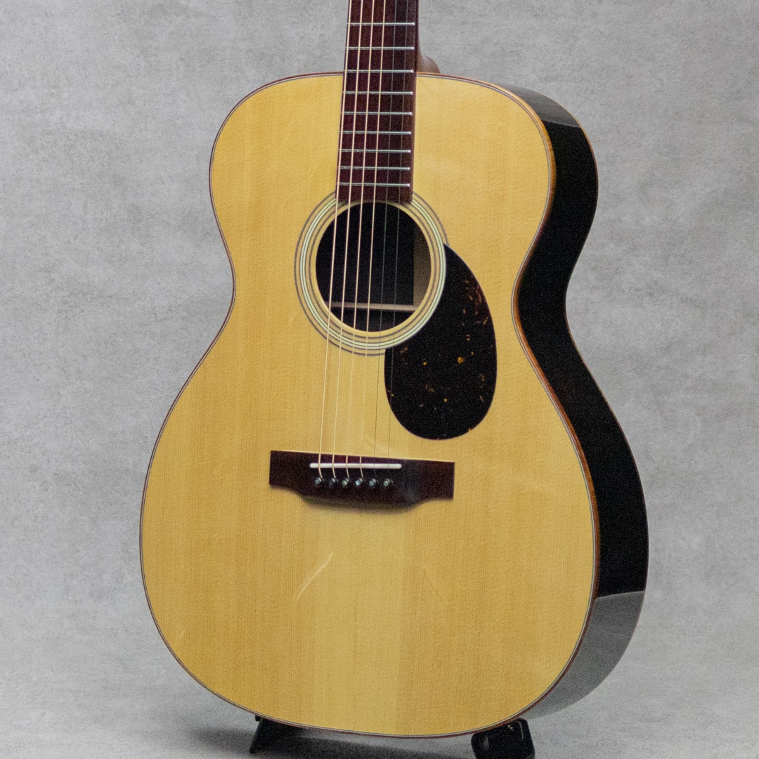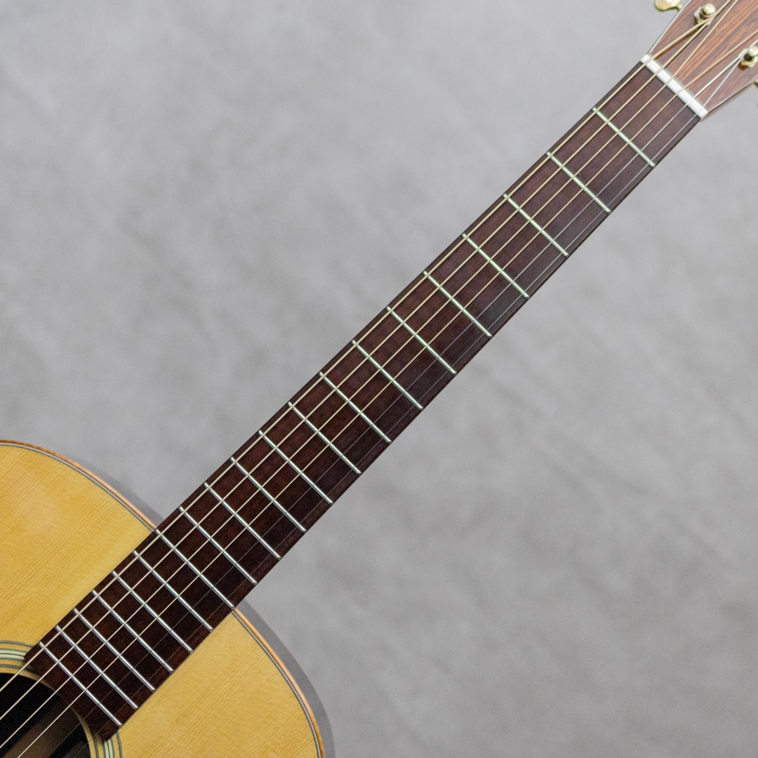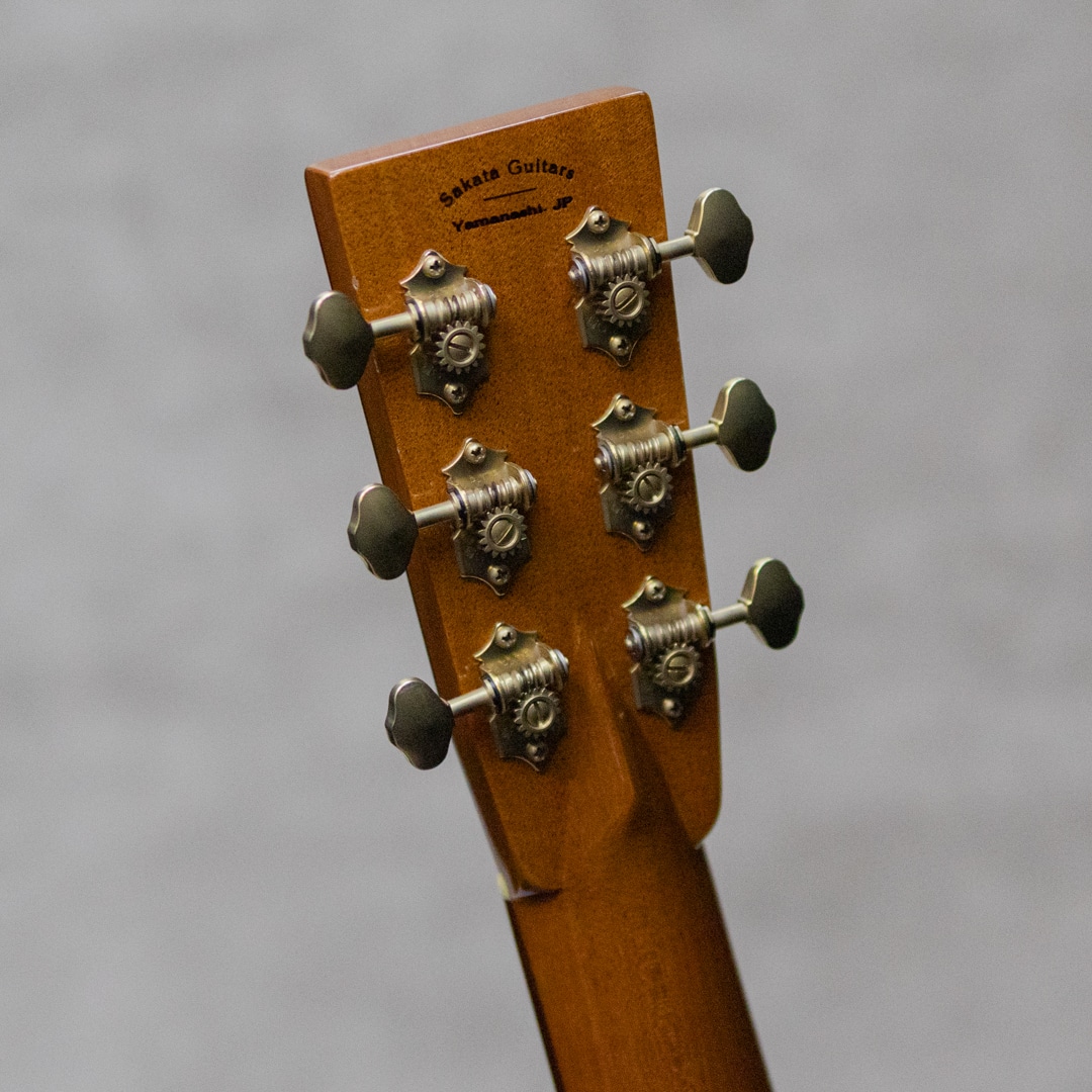 山梨県のルシアー、坂田久氏。伝統の名器を基に、最高の材、技巧を尽くし、”音楽”が表現できるギター創りを目指して創られる実直なギター。本器は、オーケストラモデル”OM-28A"。2019年製極上USED品。ベアクロウが浮き出る美しいジャーマンスプルーストップ、黒々としたワイルドな杢目のアフリカンブラックウッドサイド&バック、ホンジュラスマホガニーボルトオンネック、スネークウッド指板&ブリッジ、ゴトーオープンバックペグ、べっ甲柄セルロイドピックガード、フレイムハワイアンコアバインディング。トップブレイス構造はスキャロップXとノンスキャロップトーンバーのハイブリッド構造。ドスンと奥深く響きながらも、しっかりと埋もれないパンチのあるサウンド。坂田氏が得意とする音像感をしっかりと有するトーンとブラックウッドならではの重量感のある響きが、しっかりと大音量で轟く魅力的な1本。光にかざせばわかる程度の若干の小傷は見られますが、大きく目立つ傷や傷みはみられないグッドコンディション。ネックまわりもバッチリで、弾きやすいアクションをサドルマージンをしっかりと残しながら保っています。完成度の高い実力派が作る魅力的な1本。是非お手元で直にご体感ください。オリジナルハードケース付属