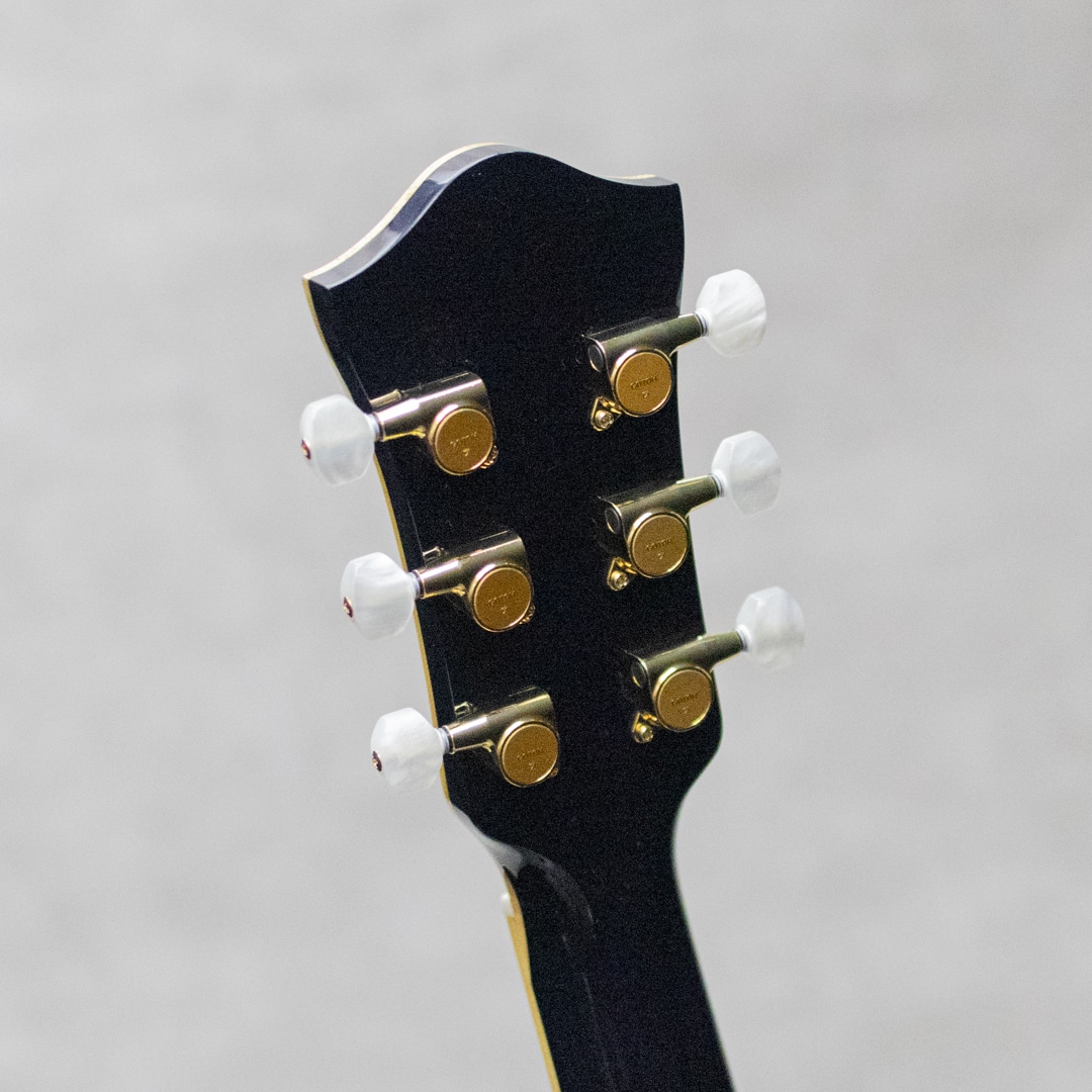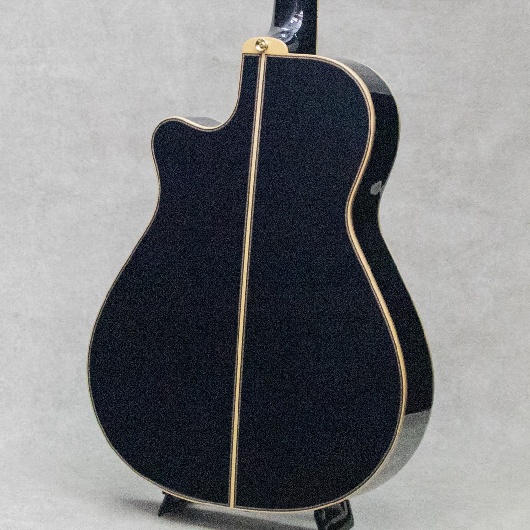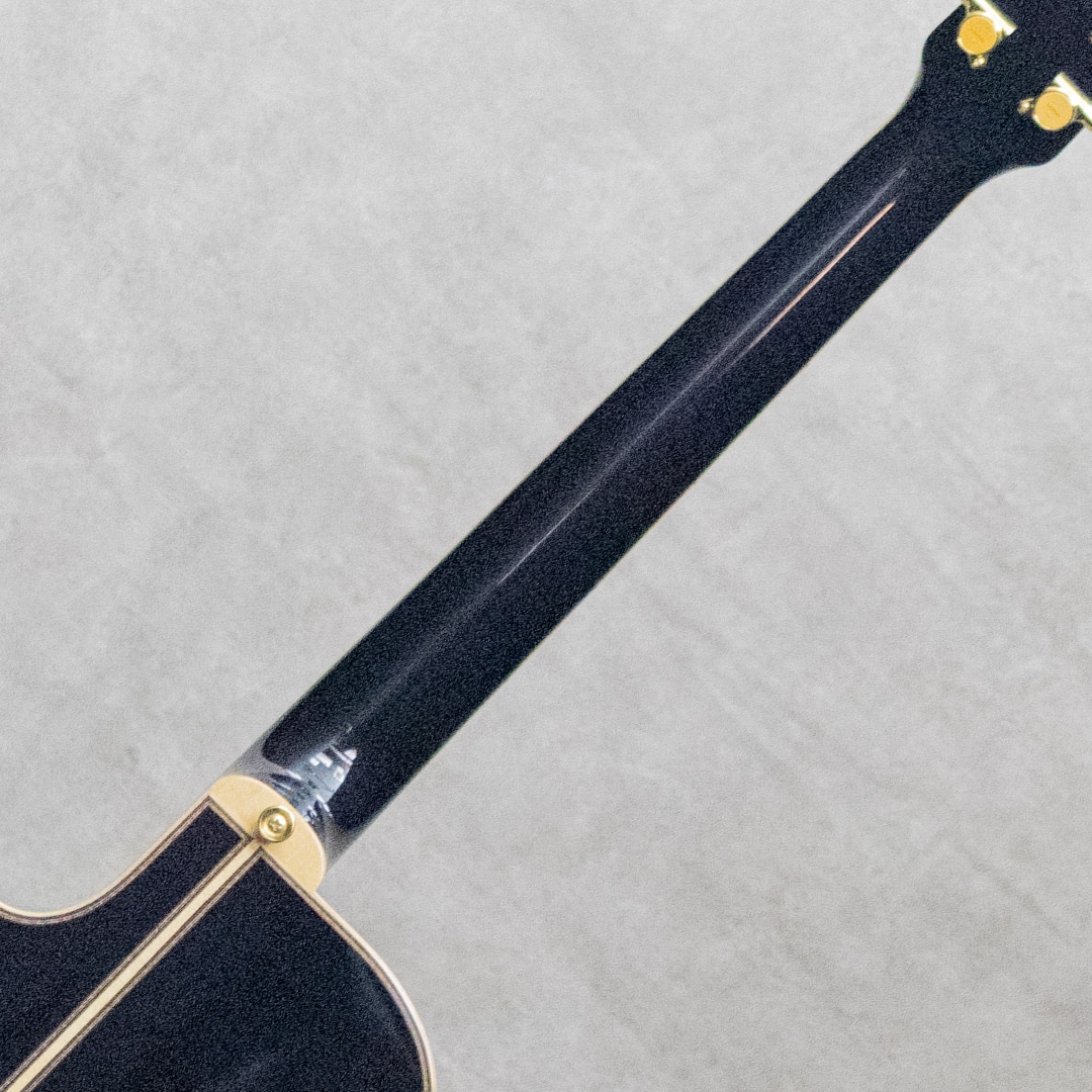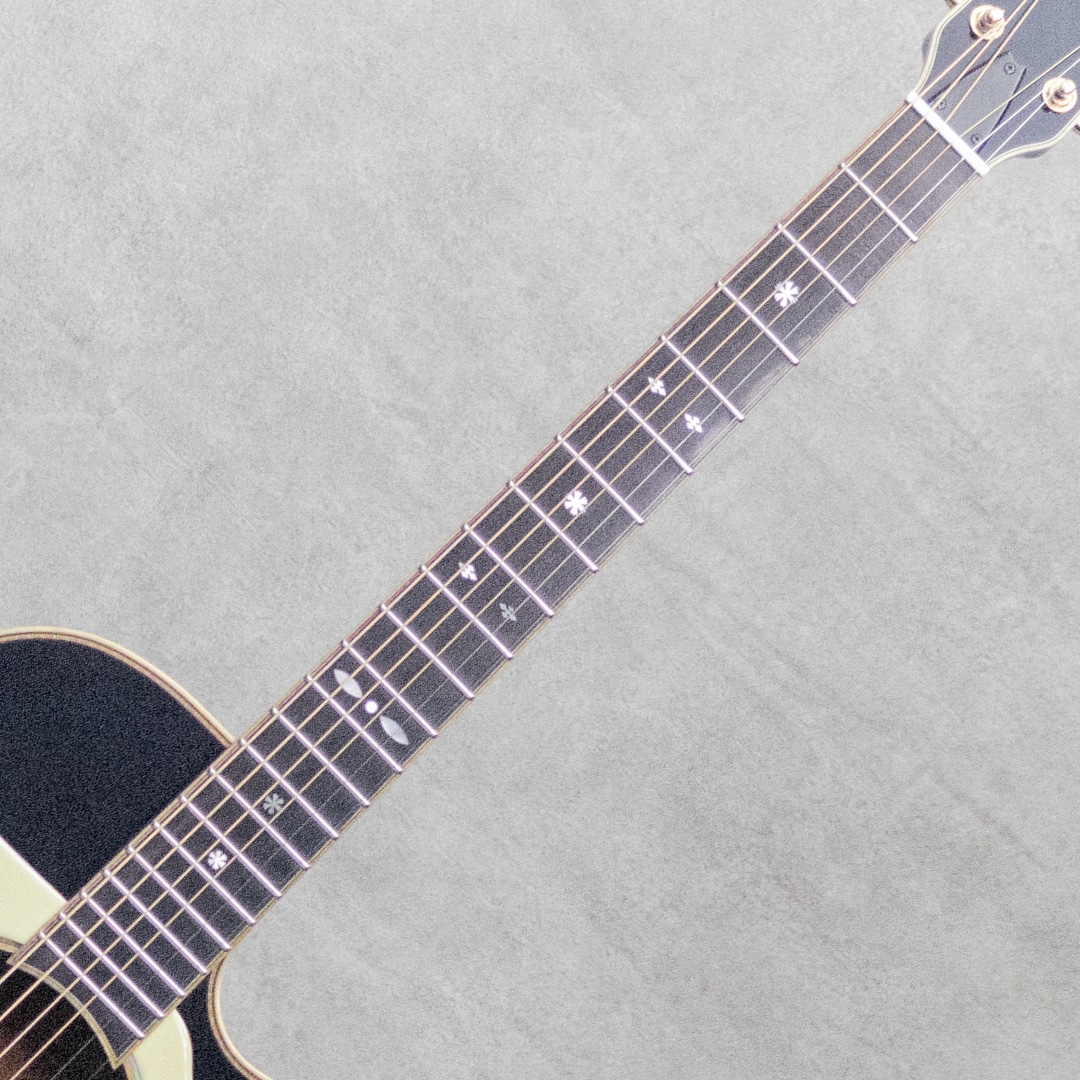 日本にカスタムギターを根付かせた最大の功労者"テリー中本”と、日本を代表するアーティストでありギタリストである"THE ALFEE 坂崎幸之助"がプロデュースするブランドTSK。本器はブランドリニューアル第2弾モデルで登場した"TSK-Midnight Navy"。深みのある濃紺色にホワイトWピックガードを配したコントラストの美しい1本。2017年製極上USED品。シトカスプルーストップ、インディアンローズウッドサイド&バック、ホンデュラスマホガニーネック、エボニー指板&ブリッジ、ゴトーゴールドペグ/パーロイドノブ、TSKスノウフレイクス指板インレイ、ホワイトWピックガード、アバロンロゼッタ、木象嵌トリム&メイプルバインディング、ベネチアンカッタウェイ。坂崎幸之助氏が所有する"Terry's Terry"のシリアルナンバーNo.21をデザインベースとしたモデル。氏の不動のメインギター"No.8"同様の薄胴シェイプながらに豊かな倍音と音量を実現した本器。取回しの良いボディサイズでストレートアコースティックの良さを存分に味わえる仕上がりになっています。テリーズブランド直系のきらびやかな高音としっかりとした造りを継承する1本。使用に伴う目立つ傷などもなく、とても良いコンディションを保った本器。ネックまわりも良好でとても弾きやすいアクションをしっかりと保っています。ネックヒール部にストラップピン増設。後付けにて坂崎氏も愛用するL.R.Baggs Element VTCピックアップが取付搭載されています。なかなか出回りも少ないTSKモデル。美しい外観と、素晴らしいサウンドを是非、そのお手元でお確かめください。オリジナルハードケース付属