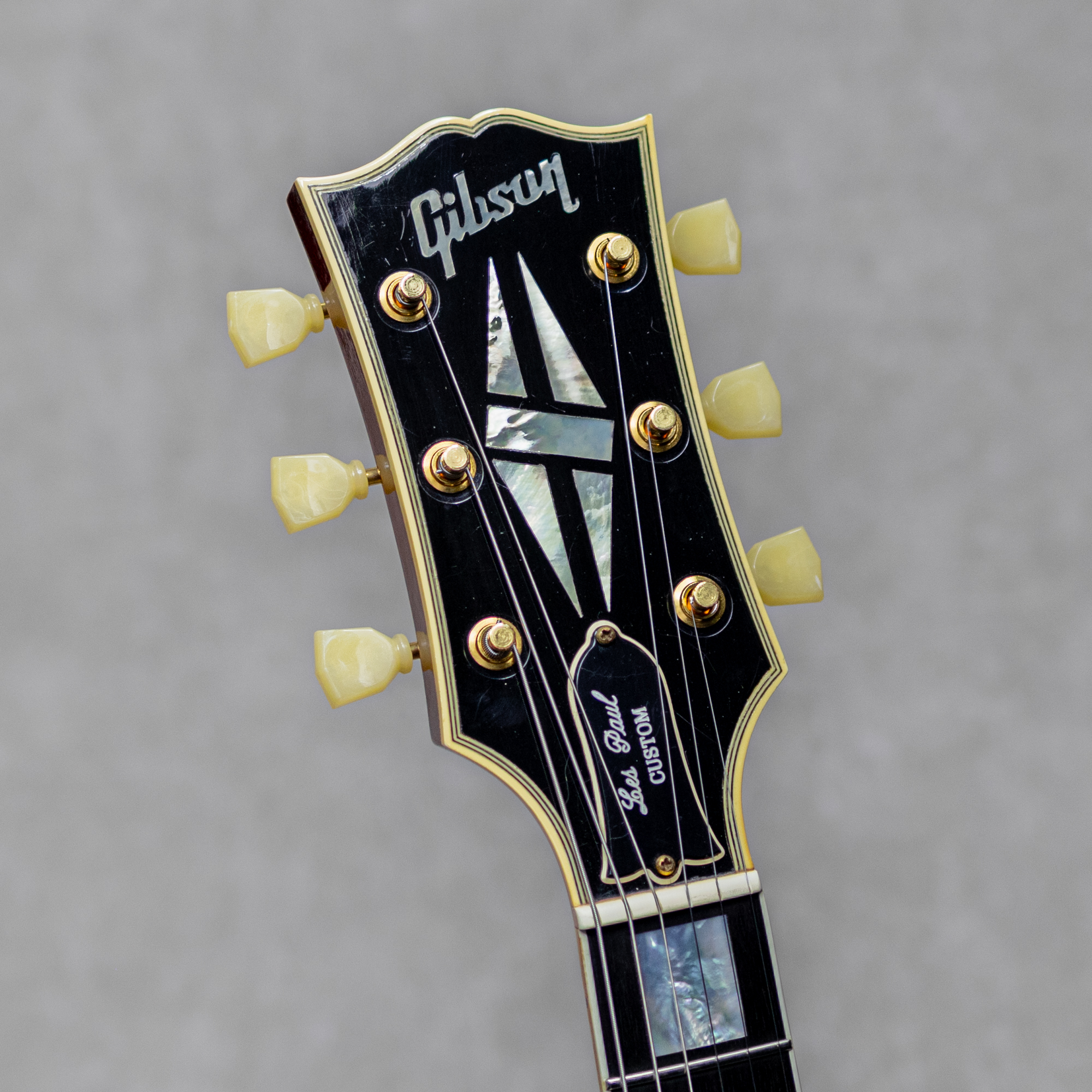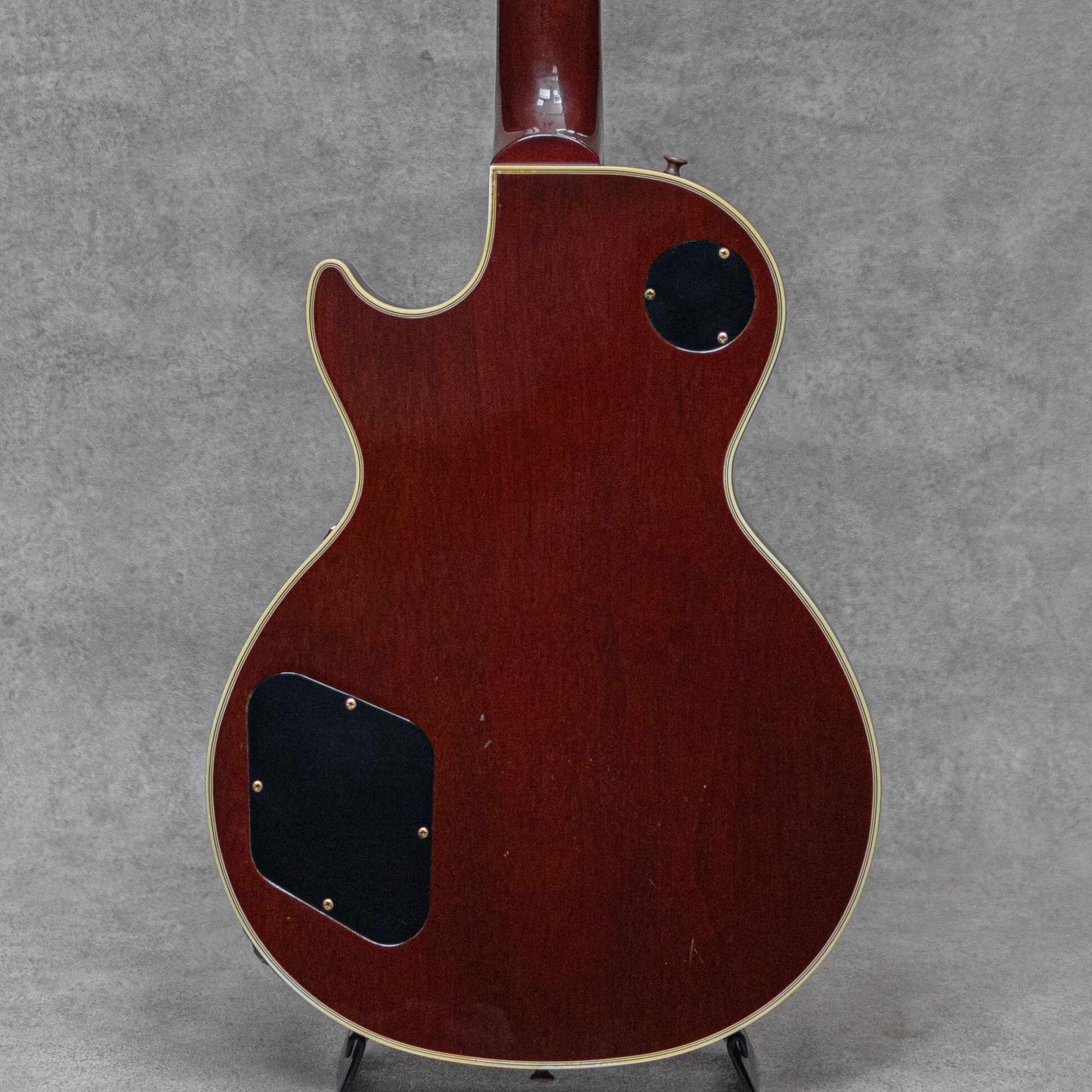 1995年登場の"Les Paul Bantam Elite"は1年程の短い期間発売、その後の後継モデル"Les Paul Florentine"、"Style-f"等に繋がったモデル。2010年代のメンフィス工場製"ES-Les Paul"にも繋がるfホール付きデザインですが、トップ、サイド、バックをラミネート材で形成する伝統的なESデザインの"ES-Les Paul"とは異なり、ボディバックのマホガニーをくり抜くことによってホロウ構造とするチェンバードボディを採用しています。本器は1995年製"Les Paul Bantam Elite"。マホガニーネック、エボニー指板、ブロックポジションインレイ、フレイムメイプルトップ&チェンバードマホガニーバックボディ、ダイヤモンドインレイ、マルチプルバインディング、ゴールドハードウェア。その他ピックガードが追加、ペグはロトマチックスタイルからゴールドクルーソンデラックスに交換済み。またピックアップはSeymour Duncan ANTIQUITYにアップデートされており、元の57Classicに比べ、よりレスポンシブルでワイドレンジ。それでいてヴィンテージフィール溢れる心地よいトーン。ホロウ構造の本体の鳴りともバランスよくマッチしており、倍音感の豊かな厚みのあるサウンドと歯切れの良い速さのある弾き心地とを手元のニュアンスでシームレスに楽しめるグッドサウンドです。こちらハードウェアのくすみ、細かな擦れや小傷、薄い塗装故のボディバックのバックル痕など見受けられますが、顕著に外観を損なったり演奏上問題となるダメージはありません。ロッドの調整を含め良好なネックコンディション、フレットの残量も全体的に85%以上ありローアクションで弾きやすいセッティングができております。カスタムショップの遊び心を存分に楽しませてくれる1本、fホールスタイルの"Les Paul"シェイプとしては最初期のプロダクトにあたるレアモデル。ぜひお見逃しなく。ハードケース付属