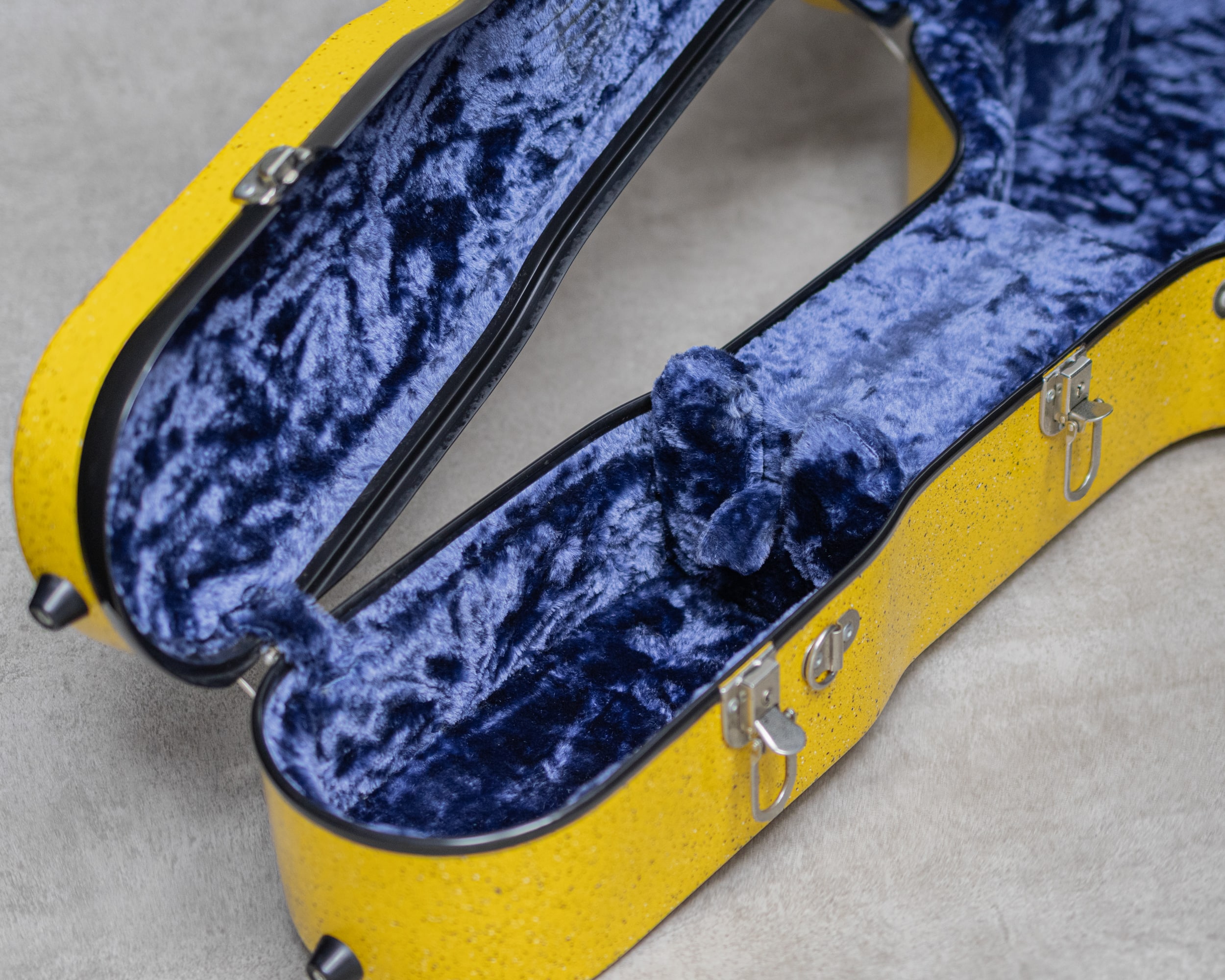 非常に頑丈で耐久性の優れたケースとして世界中の一流ミュージシャンから高い信頼を受けている”Calton Cases(カールトンケース)"。グラスファイバー製のアウターシェルと、それぞれの楽器に合わせて作られるインナーパッドがカールトンケースの特長です。ファイバーシェルは一体成型で作られるため、継ぎ目などがなく高い強度を実現。インナーパッドの厚さは、上部と底部で3~5cm、サイド部では2~3cmと楽器への衝撃を吸収するのに十分な厚みを持っています。グラスファイバーの防水性とともに、高い耐候性を確保しています。これらの工程は、すべて自社工場内で、熟練したクラフトマンによって行われています。こちらはカナダ製時期のイエローカラーOO(グランドコンサート/14f)サイズUSED品。外装の擦りキズや小さな塗装チップなど少し使用感はありますが、通常使用に問題がある個所はありません。お探しだった方はお見逃しなく。