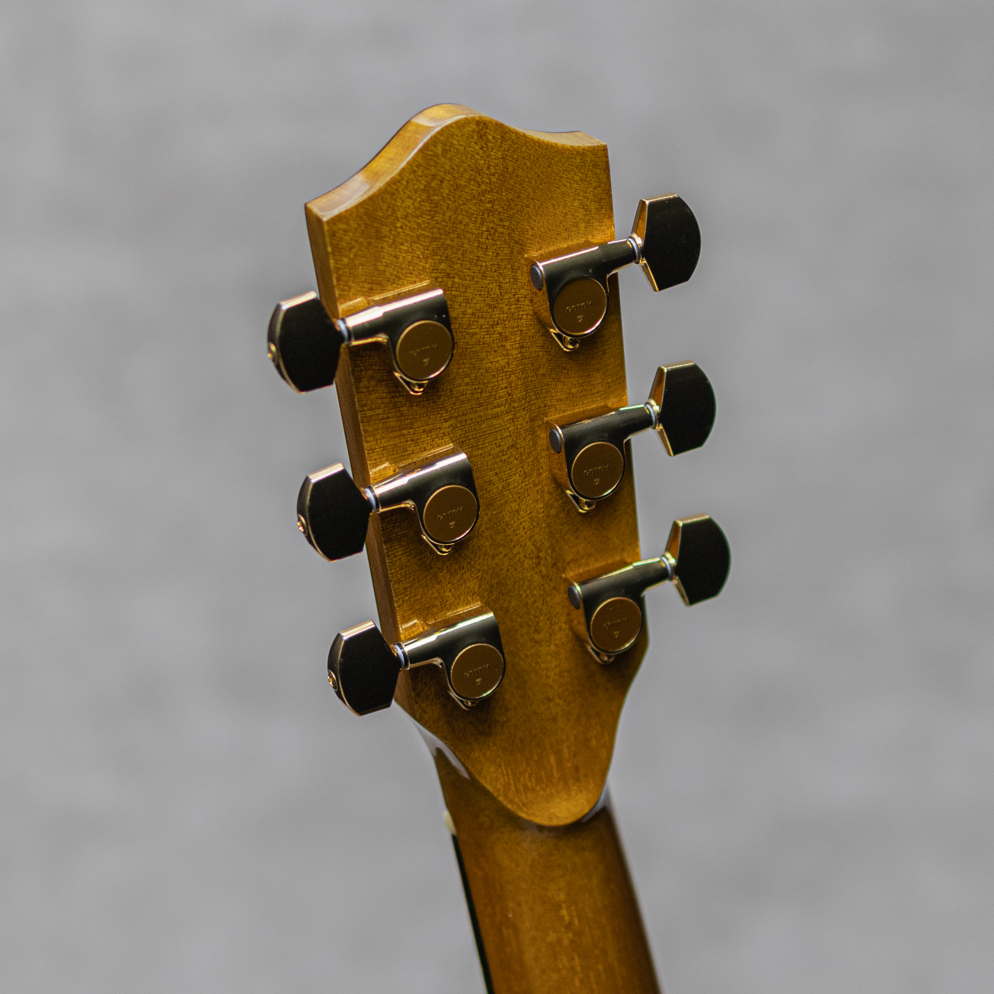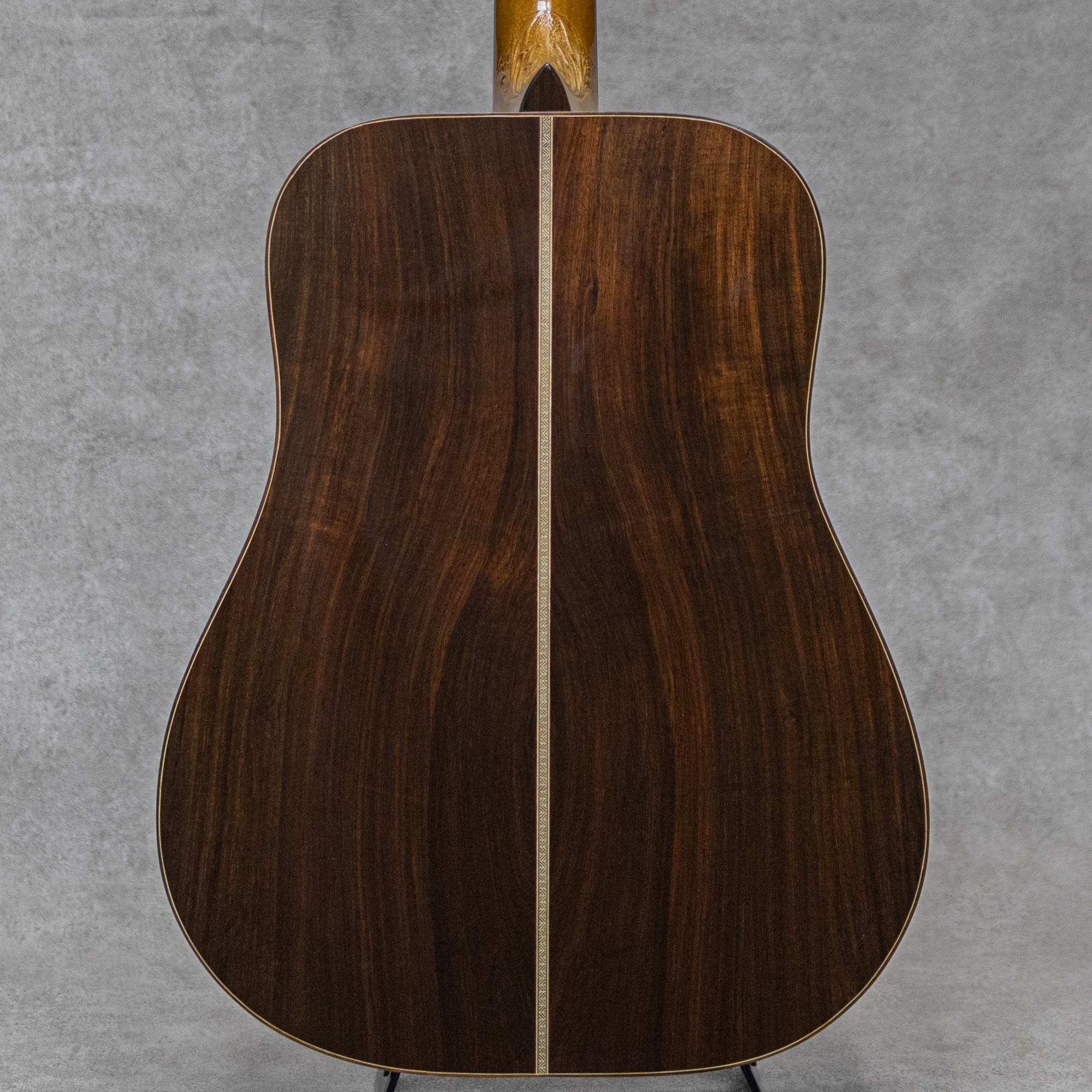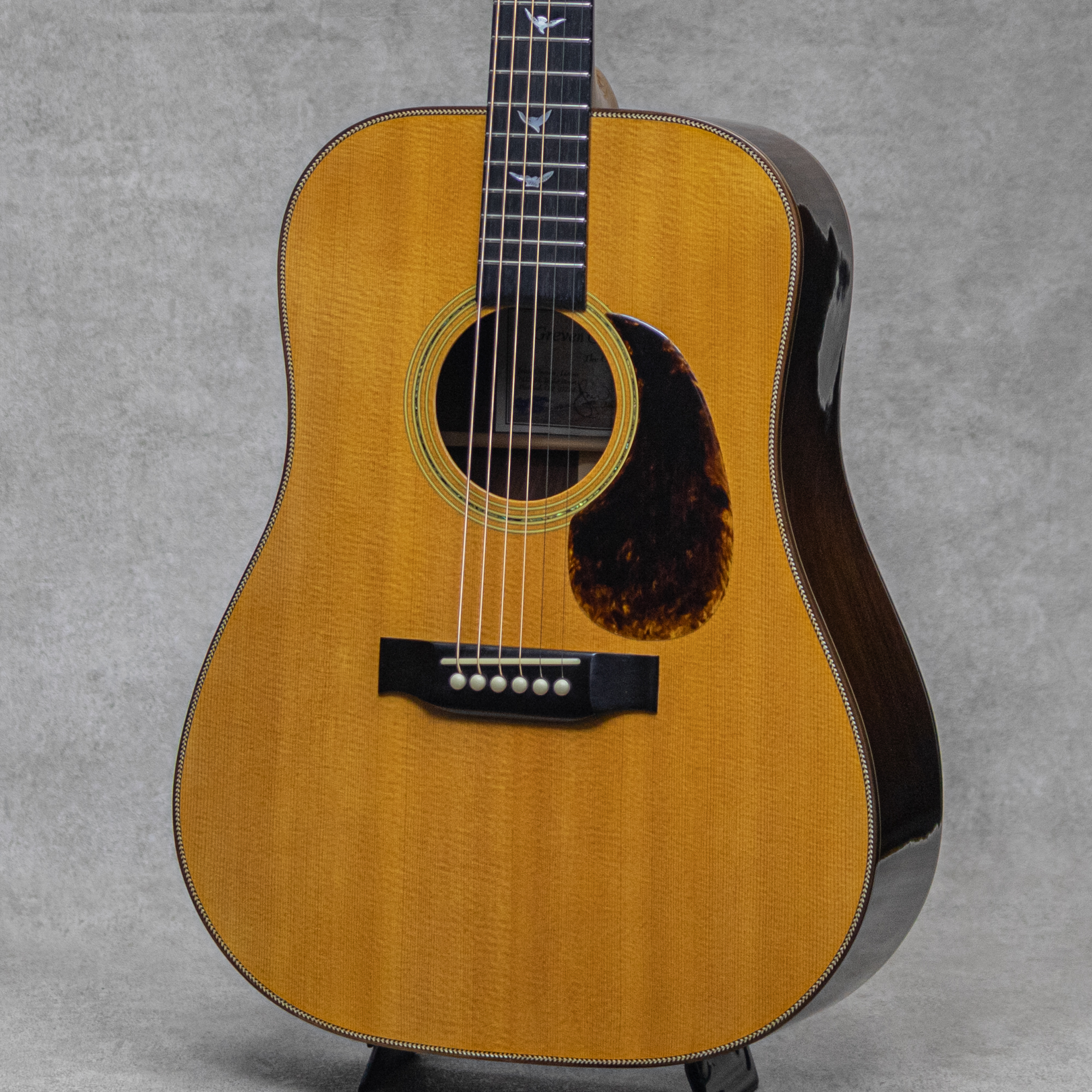 巨匠”John Greven(ジョン・グレーベン)"作の”Oshio-D”。美しいルッツスプルーストップに毛柾の極上ハカランダ、バードインレイのマスターピース。2012年製極上USED品。柾目痕がゆらめく淡い杢目のルッツスプルーストップ、毛柾目が美事な極上ハカランダサイド&バックエボニー指板、エボニーブリッジ、ヘリンボーントリム&アバロンロゼッタ、グレーベンTor-tisピックガード、フライング・バード&ヘッド指板インレイ、ゴトーゴールドペグ、ジグザグバックストリップ、ネックヒール彫刻、スキャロップブレイシング。奥深く響く倍音、粒ダチの良いレスポンス、そしてきらびやかなサスティン。それらを備えながら弾きやすく扱いやすいグレーベンならではのレスポンス感は、唯一無二です。本家ならではの大味なサウンドは、迫力があり派手でさすがのひと言です。フィンガータッチで十二分にその存在感を魅せてくれる、一時代を築き上げた名匠のマスターピースです。とてもキレイなコンディションで保たれた本器。打痕や小傷も見られず、もちろんノンクラック。ネックコンディションも良好で弾きやすいアクションをしっかりと保っています。グレーベンの中でもとりわけ人気の高い”The Oshio D”、そして極上のマテリアルで作られたコレクタブルな1本。お早めに、、お見逃しなく。オリジナルハードケース付属