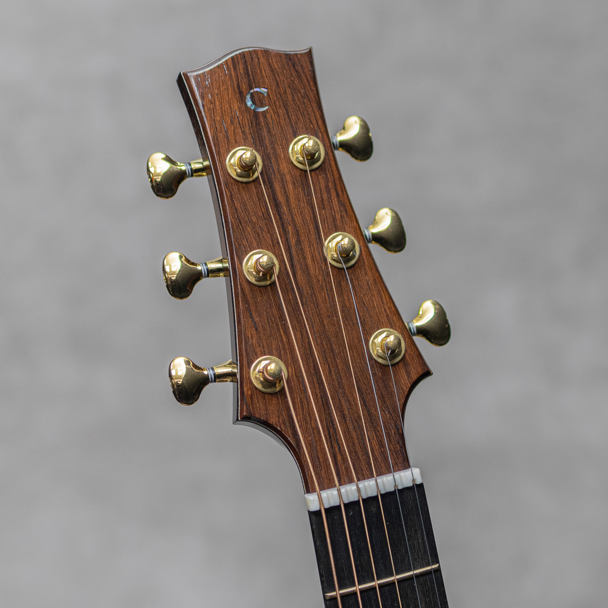 アイルランド西部に位置するクレア州ミーリックに工房を構える”Conor Casey(コナー・ケイシー)”。名工Ervin Somogyi氏の工房で製作アシスタントを経験し独立。現在は自国にて更なる作品の製作に勤しんでいます。本器は、"Custom Studio Dreadnought Cutaway”。自身の代表モデルでもある”Studio Dreadnought”にカッタウェイを施した1本。よく目の詰まったマスターグレードスイスアルパインスプルース、ハカランダ杢が美事なマダガスカルローズウッドサイド&バック、艶かしくゆらめく杢が美しいリクライムドブラジリアンマホガニーネック、アフリカンエボニー指板、黒檀とマダガスカルローズウッドの積層ブリッジ、Gotoh510ゴールドペグ、ハンドカーフィング”ケルティックモチーフ”ロゼッタ、EVOゴールドフレット、16”-20"コンパウンドラジアス指板、Xブレイスを基にしたラティスブレイシング。ソモジ直系のふくよかで芳醇な響き。しっかりと重厚に反響するボトムトーン、そしてそれに負けずに彩るコードトーン。しっかりと各レンジで立体的に粒立ちながら、決してピーキーでなく野太く続くサスティン。フィンガータッチで驚くほどに大音量のレスポンスを体現しています。アメリカンギターの持つ豪快さとは一味違く、北欧の匂いをしっかりとはらんでおり、上品かつ涼やかに響き渡る至極のトーン。全体的にグリーンをコンセプトカラーに採用しており、あたかもミーリックの緑豊かな情景を彷彿させる顔付き。派手な装飾は持たずとも、まとまりと確かな技術で造り込まれる美しさを兼ね備える1本です。確かな実力で作られる完成度の高い1本。是非お手元でご堪能ください。オリジナルハードケース付属