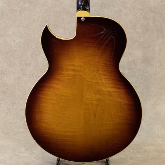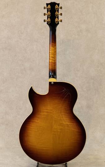 スプルース単板トップ、サイド&バックはメイプル、エボニー指板&ブリッジ、ギブソンの最高級アーチトップに採用されるシールファストペグ、L-5CES同様のフラワーポットインレイ、風格ある外観です。