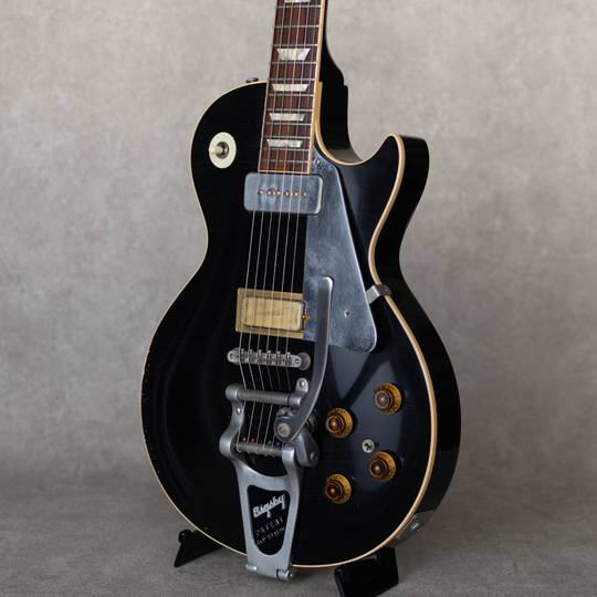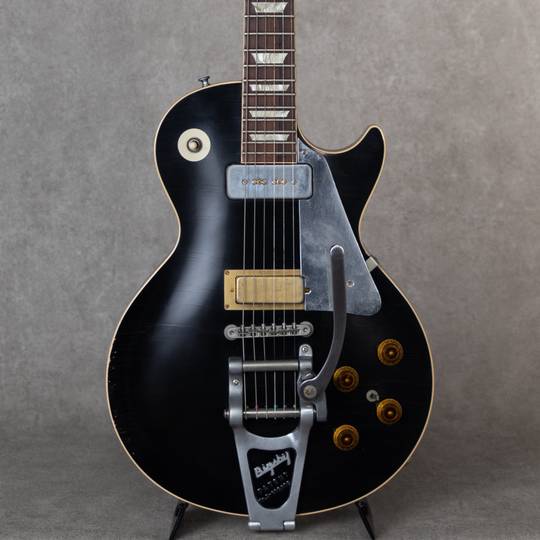 2005年製1956 Les Paul Tom Murphy Aged "Old Black"!インスペクションシートに”LP Neil Young”と記載された、ニール・ヤング仕様が再現されたレアモデルの入荷です。当機は当時の代理店オーダーによる限定モデルで、1956 Les Paulをベースに、リアPUにゴールドカバーのミニハムバッカー、ビグスビー搭載にシャーラースタイルのペグ、金属製ピックガードにニッケルカバーのフロントPU、ミニスイッチ増設等、ニールヤング・スタイルが再現されております。当時、VOS仕様とAged仕様が極僅かのみ生産され、当機は貴重なAged仕様のモデルとなります。ミニスイッチの機能は元々はフェイズアウトですが、当機はミニスイッチでブーストONとなるファンならではの改造が行われております(電池はコントロールキャビティに収められています)。リアのミニハムではエッジの効いたクリスピーで存在感のあるサウンドを、フロントのP-90ではウォームで芳醇な倍音感を持ったサウンドを聞かせてくれます。ブーストをOnすればファットでナチュラル・ドライブするグッドサウンドをご堪能頂けます。
