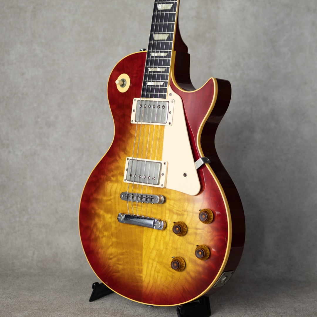 Gibsonソリッドギターの雄”Les Paul”において、68年の再生産以降大胆な構造の変更やLes Paul Deluxeの登場など、王道スタイルの不在が続いた70年代。追日、市場においてオリジナルサンバーストへの憧れが高まっていく中、その後のLes Paul Reissue~Historic Collectionへと続く、原点回帰への先駆けの一つとして発売されたのが当モデルです。70年代後半のディーラーオーダーによるセンター2シームトップレスポールや、前年79年に発売されたLes Paul Kalamazoo等の反響を受け開発、新しく稼働していたナッシュビル工場での生産が開始。