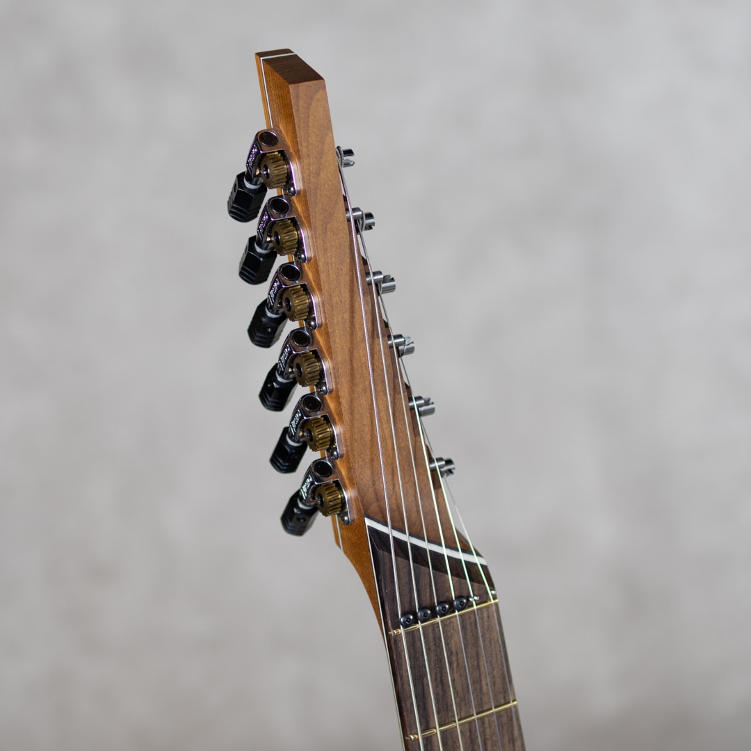 スワンプアッシュボディ、トリファイド・メイプル・ネック、インディアンローズウッド指板といったウッドスペックを採用。一際目を引く独創的なデザインながら収まりの良いボディシェイプで、長い年月を経た木材のような乾燥状態が再現されており、豊かな生鳴り、軽量なウェイトを実現しており、高い演奏製とフィット感をプレイヤーに与えてくれます。