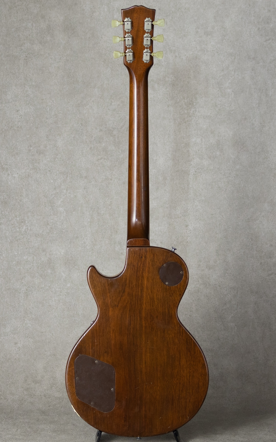 本器は再生産開始の1968年、SGのヘッドを彩ったクラウンインレイの名残をとどめる最初期スペックの一本。Gold TopにP-90/チューンOマチック搭載の56年モデルを踏襲した仕様。1ピースマホガニーネックにメイプルトップ/マホガニーバックのボディといった基本的な構造はオリジナルに準じているものの、14度の浅いヘッド角、逆にSGモデルと同様に深い5度程になったネック仕込み角、当時の標準的スペックとして採用されていたナイロンサドル等、50’sとは異なるディテールが独特のキャラクターを持たせる第2期レスポールです。各所設計角度の変更に伴い、弦テンションのかかり方が変わったことによる違いが特に大きなサウンドキャラクターを形成。少し弦鳴りに特化した鳴り方は50’s Les Paulの深く豊かな鳴りに対すると多少淡泊に感じなくはないものの、軽快なフィーリングを持ち、煌びやかでクリアなトーン、ドライブさせた際もコードの纏まり感のよいサウンドをアウトプットいたします。勿論レスポールらしいファットなトーン、分厚い音圧感はありつつ、しなやかでタイトなアタック、独特にルーズさのあるサスティーンが”いなたく”も魅力的なグッドサウンドです。
