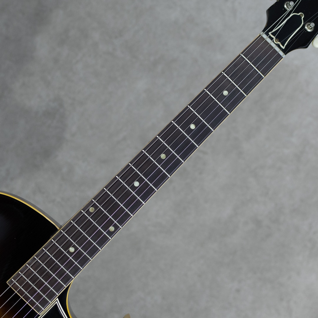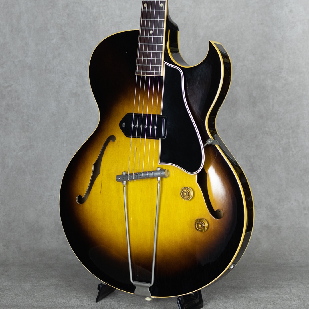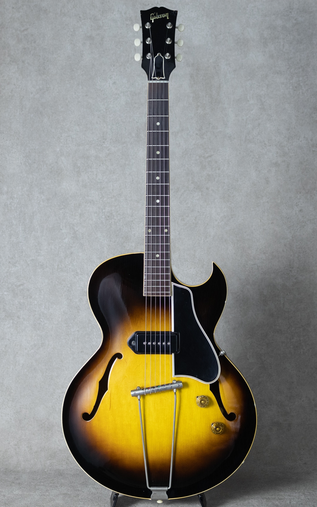ギブソンアーチトップのシンボディ(薄胴)としては最も初期のモデルである"ES-225"。登場初期のレスポールに近いスタイルのトラピーズテイルピースと、ブリッジ下部の補強ブロック(トップのみ接する特徴的な構造)が大きな特徴。おそらくはサスティーン向上を狙って取り付けられたこのウッドブロックは、後に登場するES-335TDのセンターブロック構造の原型として知られます。
