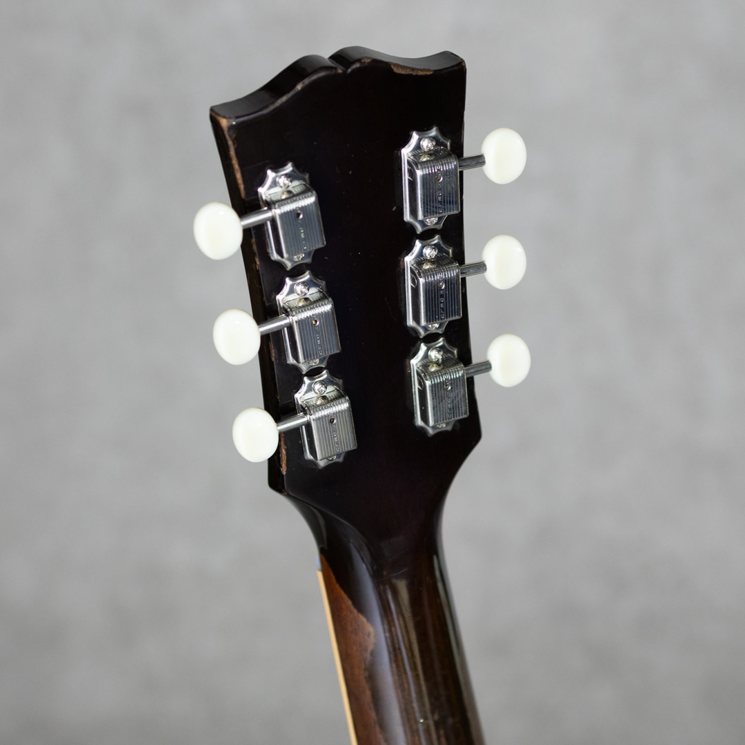 こちらピックアップ、ポット、コンデンサを含めオリジナルサーキット。ペグは近年製クルーソンシングルラインに交換済み。フレットナットはオリジナルをキープしており、年式相応にヘリはあるものの現状音詰まりなどございません。雰囲気の良いウェザーチェックや塗装の剥がれなどヴィンテージらしい経年はあるものの、塗装の艶をしっかりと残した比較的綺麗な印象。経過年数を考慮しますと外観・状態ともにとても安定した個体です。汎用ハードケースが付属いたします。