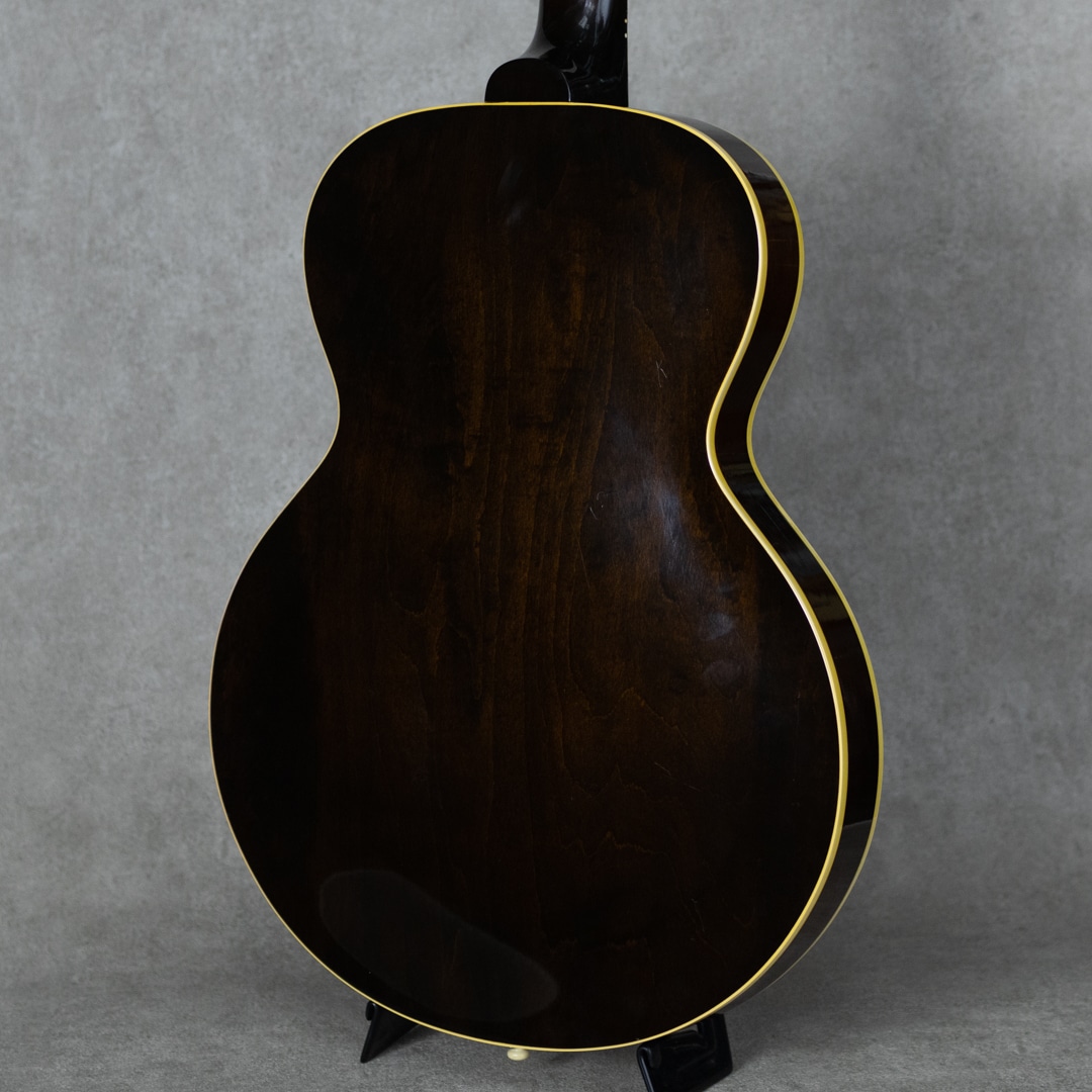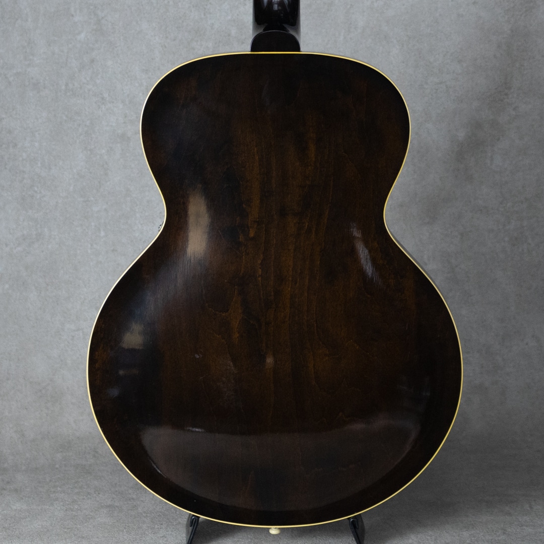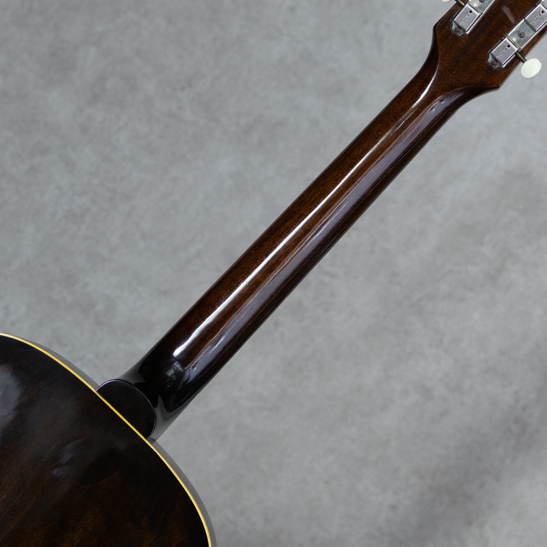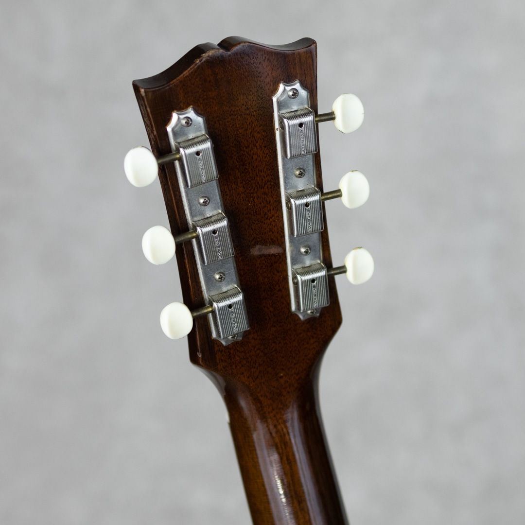 戦後46年の販売再開よりGibsonの普及モデルとして広く販売されたES-125。アーチトップモデルの中では廉価モデルとしてラインナップされ、多彩なバリエーションを持ちます。シンプルな装飾でコストを抑えておりますが、音色は上質。価格の上昇が著しいヴィンテージギブソンの中でも、比較的お求めやすいESとして人気のモデルです。本器はレアな59年製ノンカッタウェイ、ダブルピックアップのスペック。16インチのラミネイトメイプルボディ/マホガニーネック/ハカランダ指板/ワイドナット/17度のレギュラーヘッド角。カッタウェイなし故のアコースティック感の強い生鳴りも申し分無しで、心地よいエアー感と枯れた質感、図太い音像と豊かなサスティンを持ったグッドサウンドを聞かせてくれます。