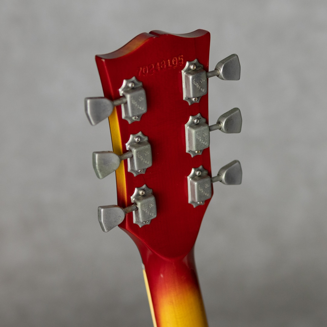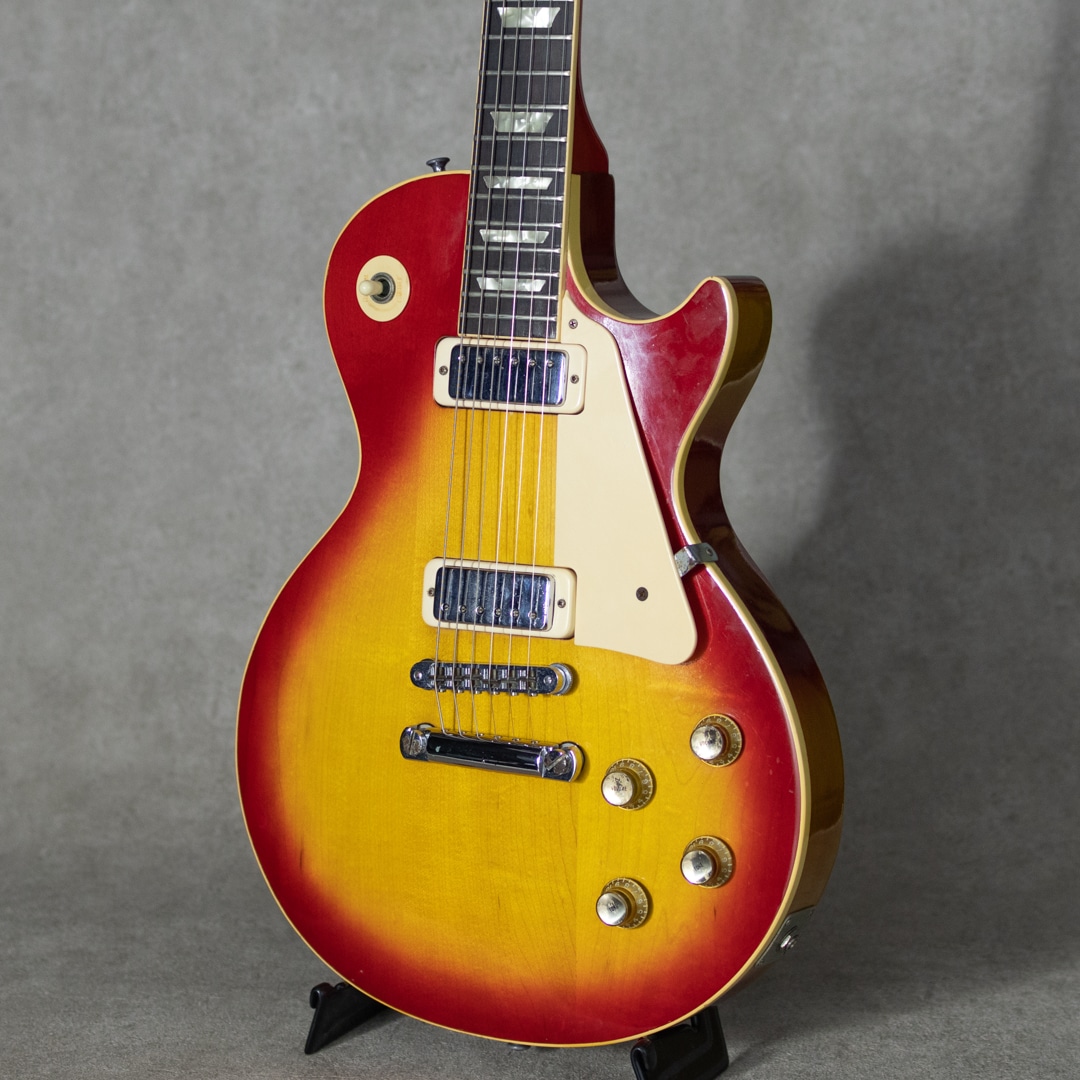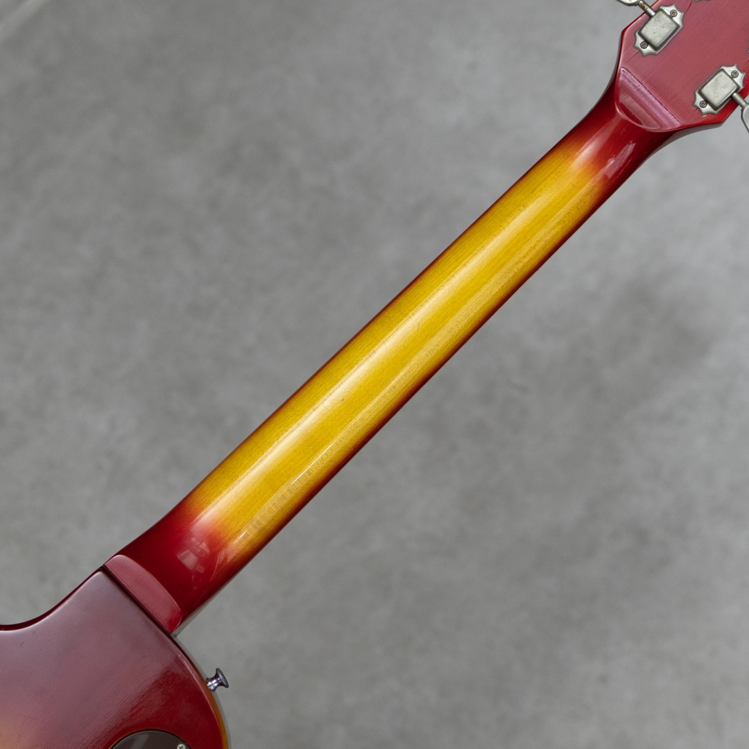 永遠にギタリストの憧れであり続け、エレキギターの王道ともいえるLes Paul Model。52~60年にかけてのオリジナルレスポールが廃盤となり、60年台ではSGモデルの生産へと転換。68年の再生産、最初のリイシューモデルを経た後、ミニハムバッカーの採用と共に”Deluxe”へとモデルチェンジをしました。その後Les Paul Deluxeは、工場の移転なども受け、各所に仕様変更がなされながら85年頃まで製造。本器は3ピースメイプルネック採用の1978年製。その他のスペックもラージヘッド/角度の浅い14度角ヘッドアングル/ナッシュビル工場製を示す小さなネックサイドドット/ナッシュビルチューン搭載/鮮やかなチェリーサンバーストはネック裏、ボディ裏にもペイントされる等、独特のルックス、キャラクターが魅力的なLes Paulです。69年の後半頃から所謂”パンケーキボディ”へと変更されていたボディ構造は、この年78年からは1ピースマホガニーバックへと回帰をしていますが、トップメイプルは継続して3ピース。しっかりとしたボディの重量が感じられる、まさに70'sギブソンです。その後80年台以降、原点回帰の方向へと市場ニーズが遷ってゆき、90年台カスタムショップの設立~現在へと至りますが、その1つ前の時代、地層こそがナッシュビル工場の稼働が始まった70年台であり、近年また異なる評価をされることとなった”ノーリンエラ”、Gibson昏黄の時代といえるでしょう。