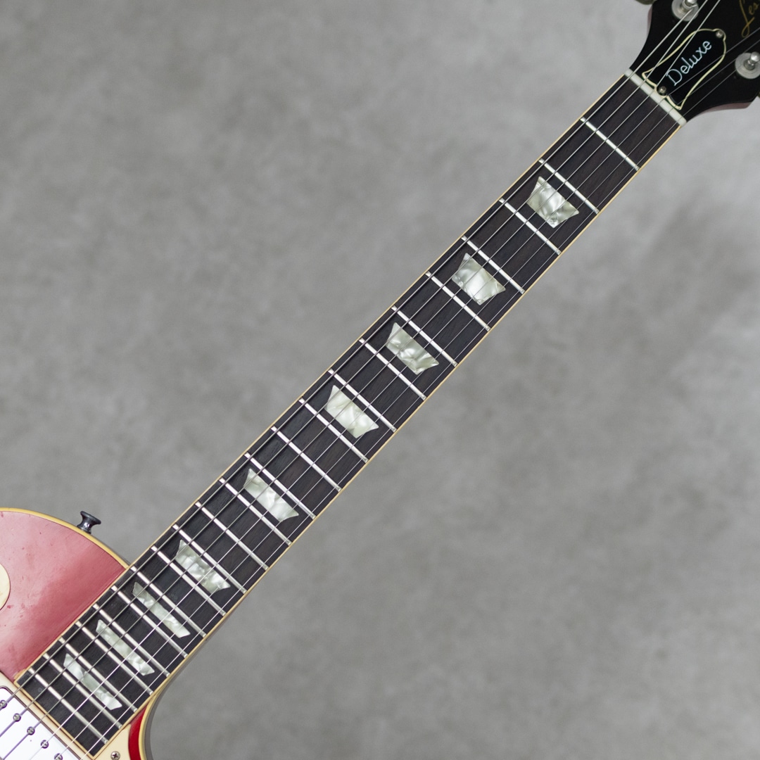 最大の特徴であるミニハムバッカー搭載による明るい響きは、通常のハムバッカーに比べて低域が落ち着いている分音像がクリア。特有の粘りながらも挙動の速い立ち上がりの良さはこの年代のデラックスならでは。アンサンブルの中でもすっきりと抜け、存在感を示してくれる響きが魅力です。4.53・のしっかりとした重量と、浅いヘッドアングルにより、弦鳴りにシフトした造りは、エフェクター等の周辺機器によるサウンドメイクが本格化していく時代を体現しているともいえます。ある意味では現代的なアプローチにもぜひ有効的に使っていただきたい特徴です。